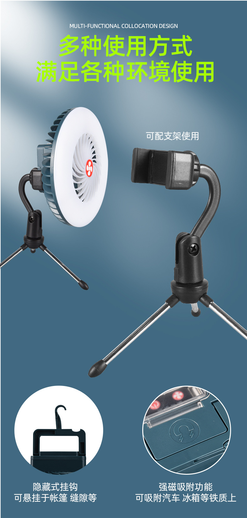 공장 판매 USB 충전식 팬 램프 테이블 램프 야외 라이브 조명 충전 휴대용 캠핑 조명 자석