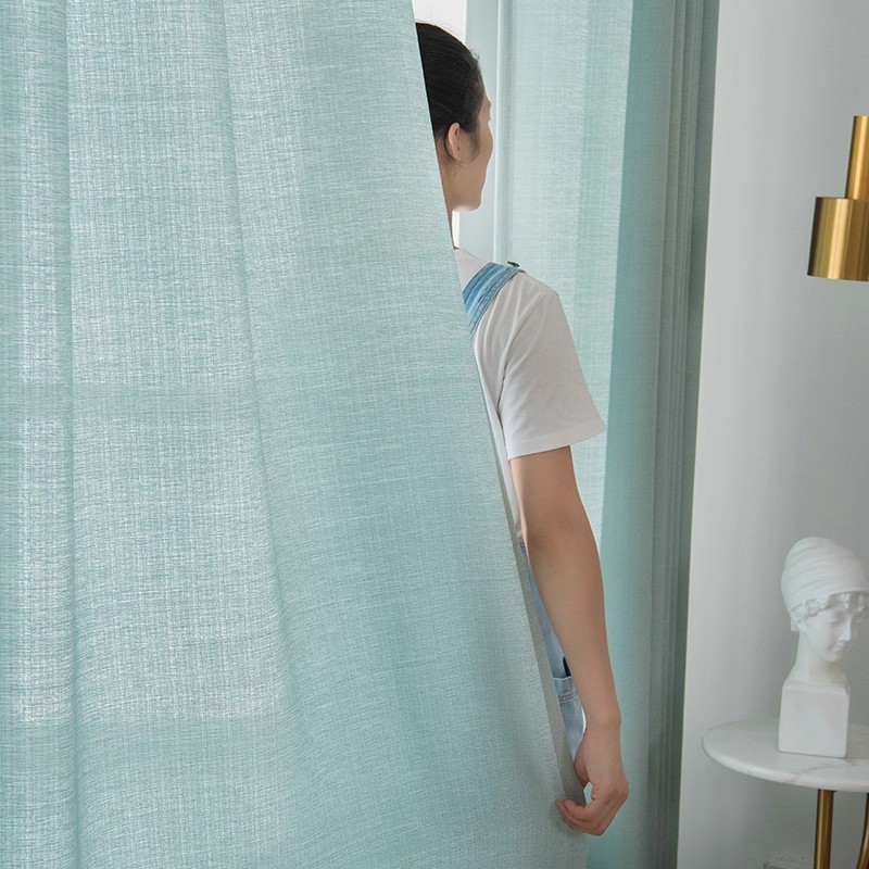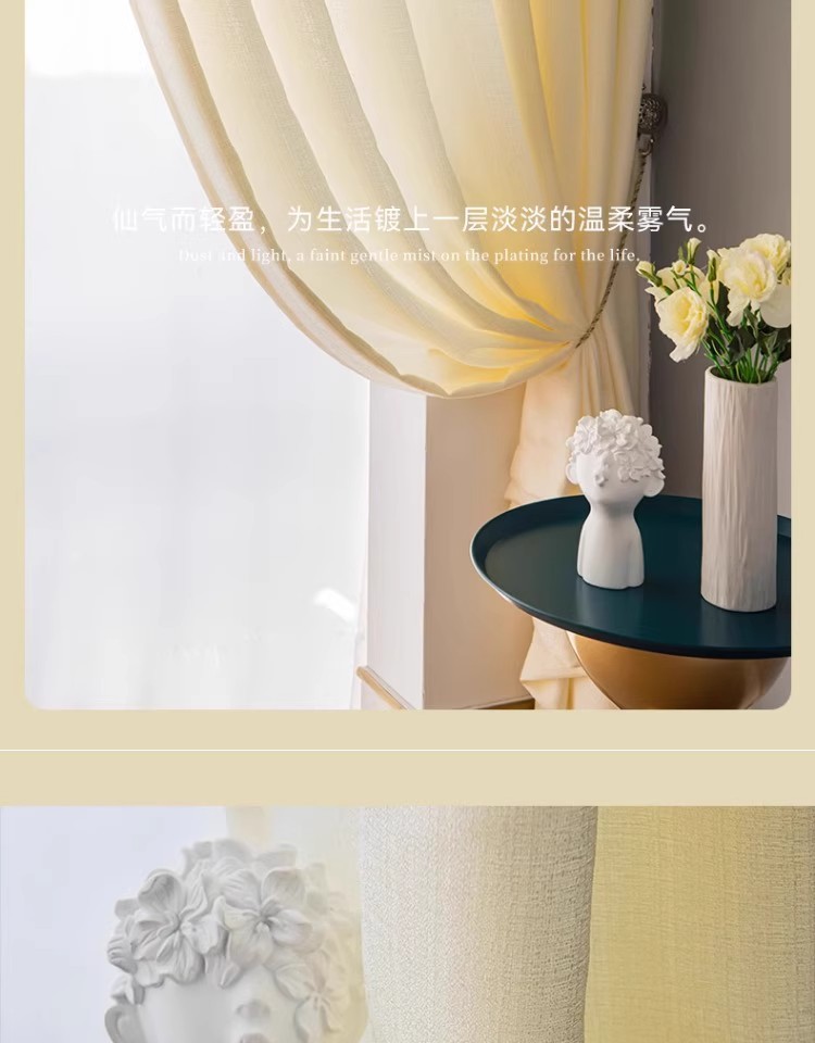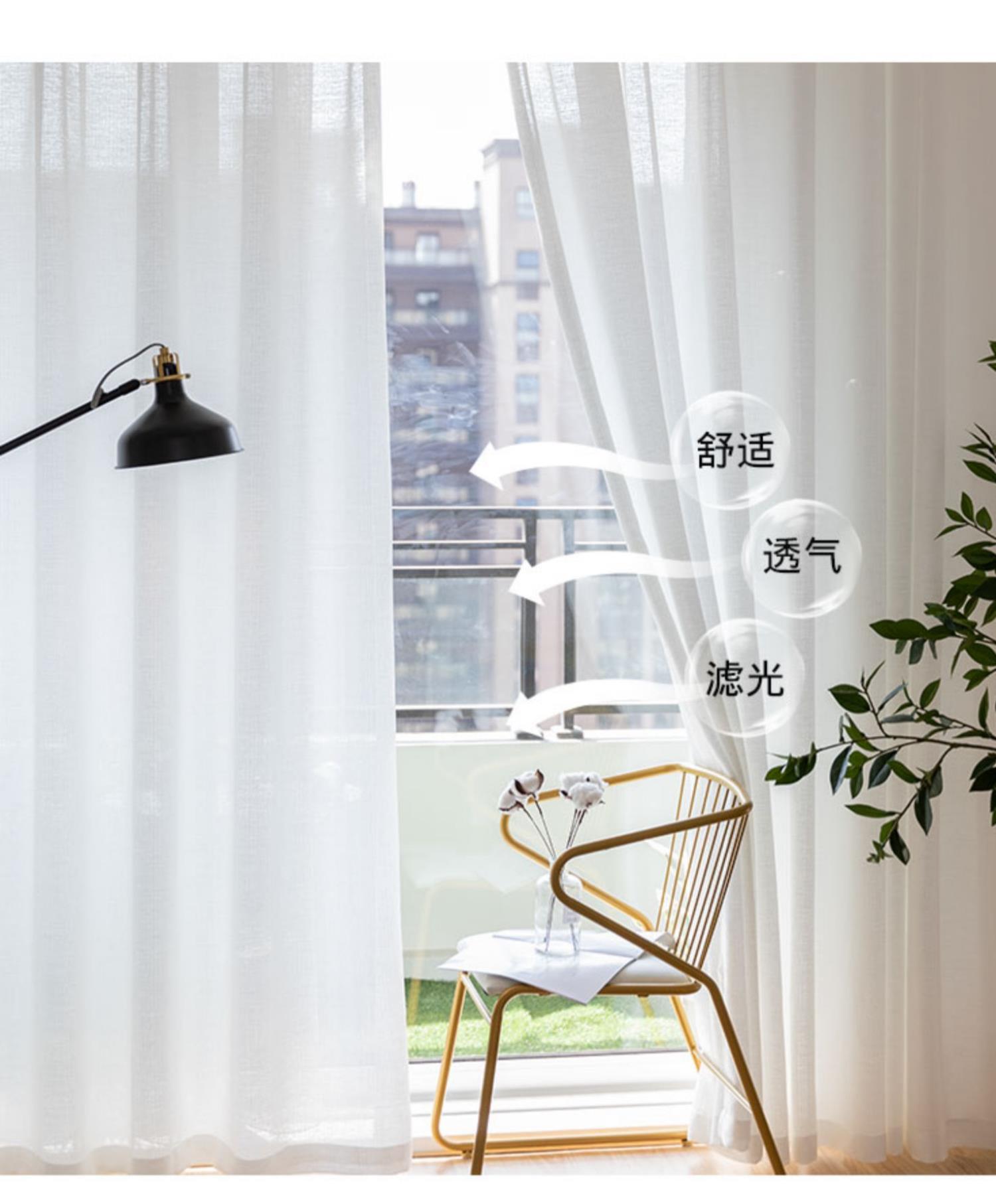 거즈 커튼 발코니 거즈 차양 빛 투명 두꺼운 커튼 화이트 북유럽 베이 창 거실 홈 하얀 모래 창