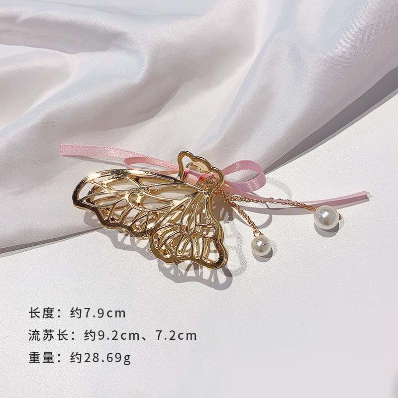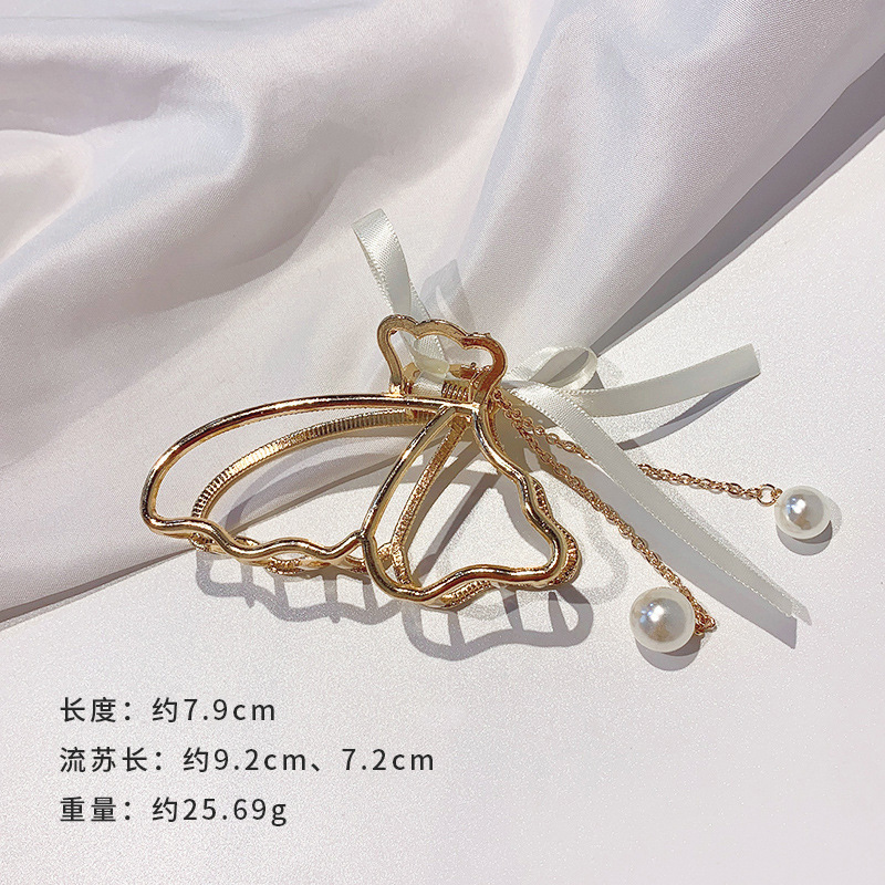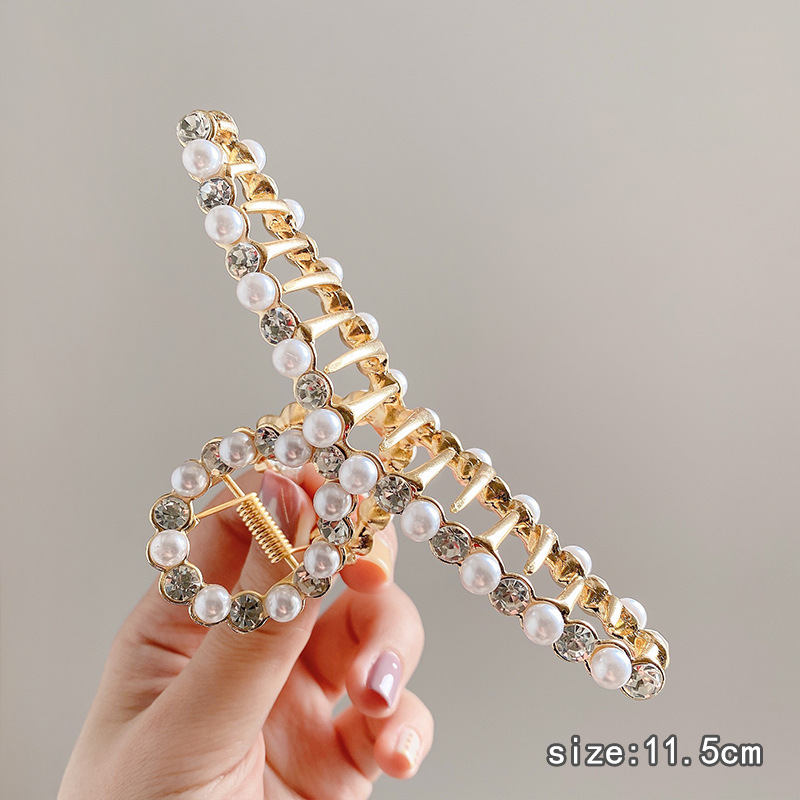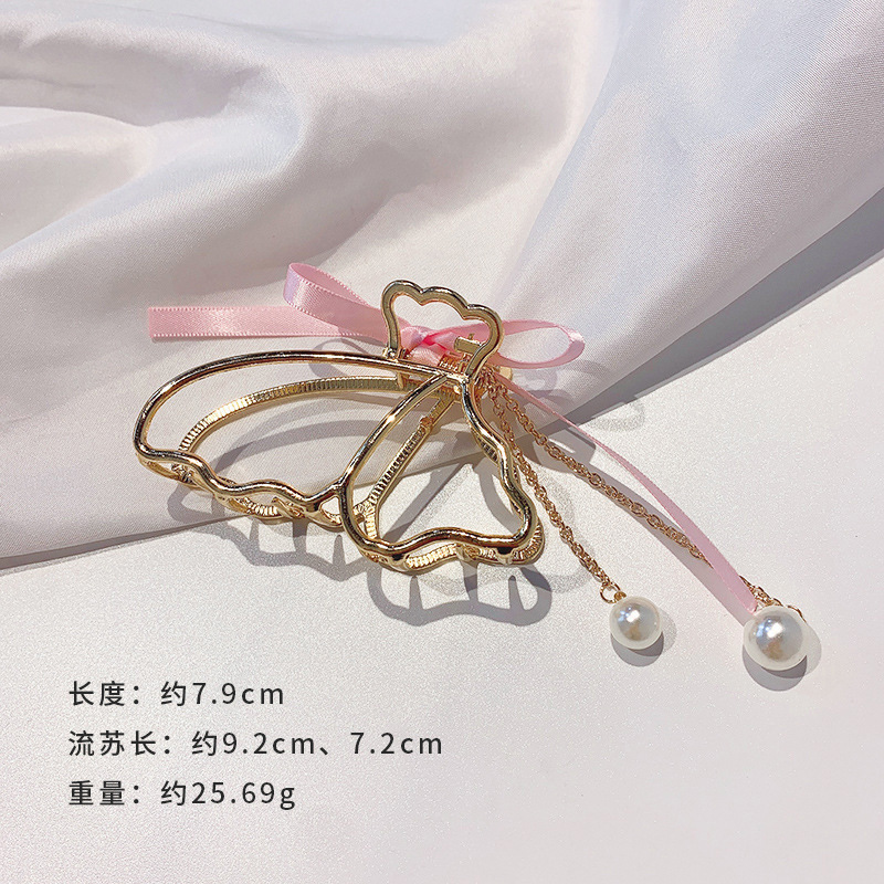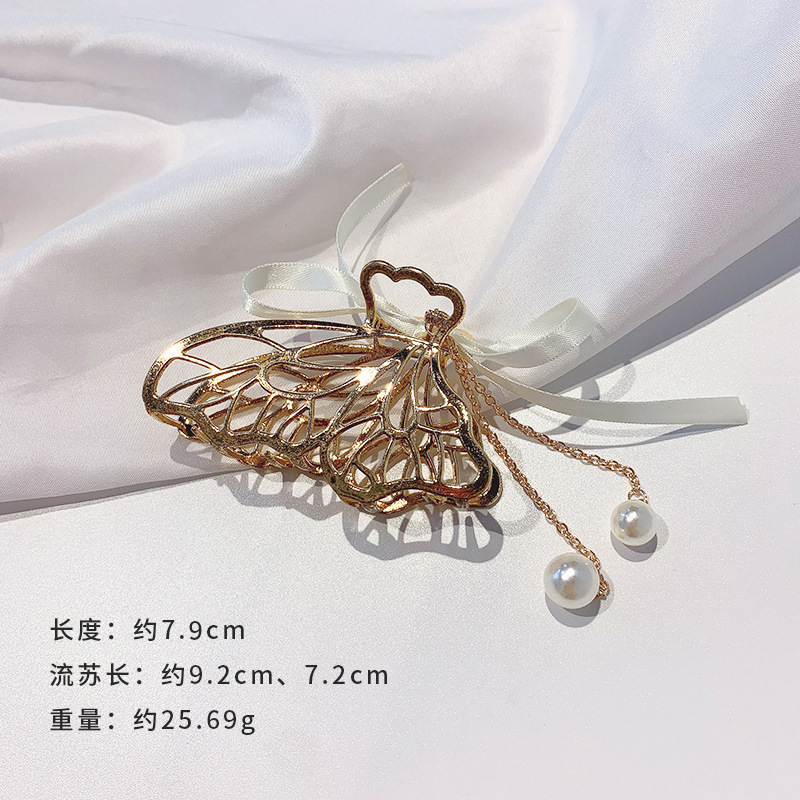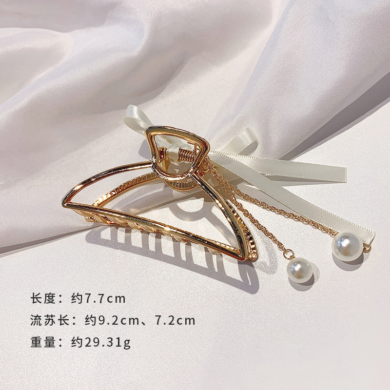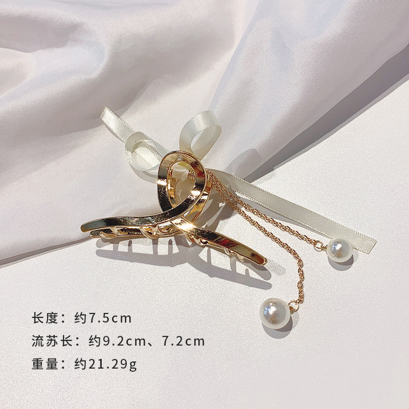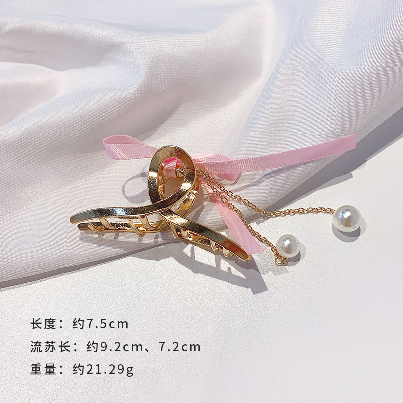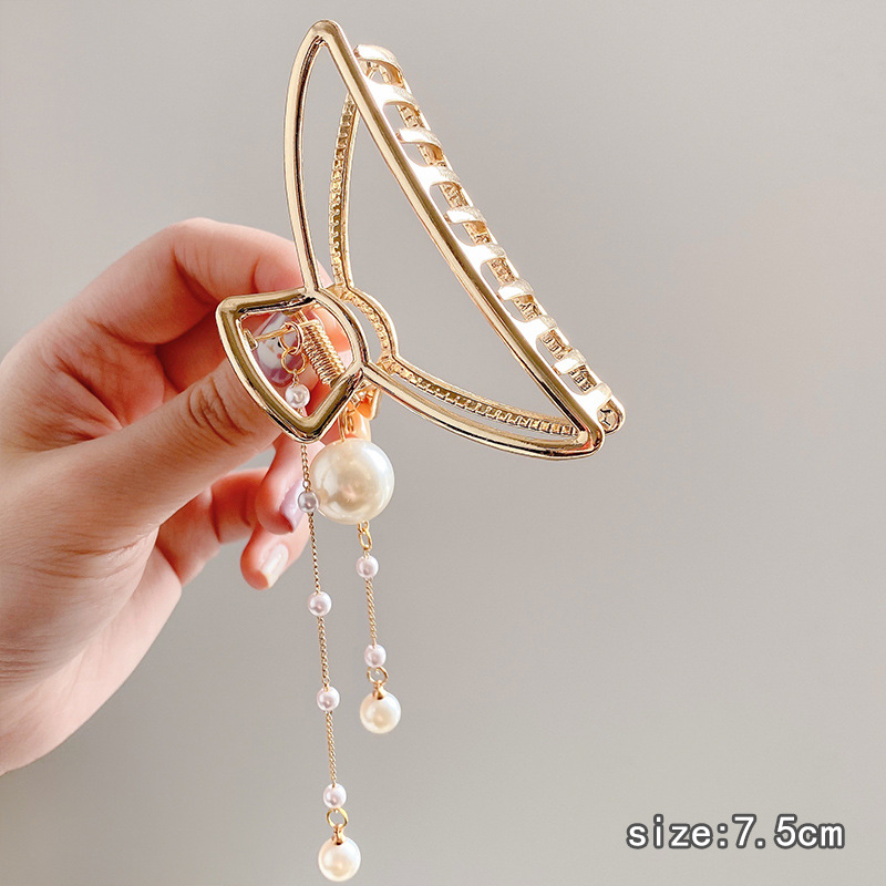 한국식 뒷머리 머리핀 여성용 활 펜던트 그랩 클립 진주 술 금속 상어 클립 디스크 헤어 클립 머리 장식