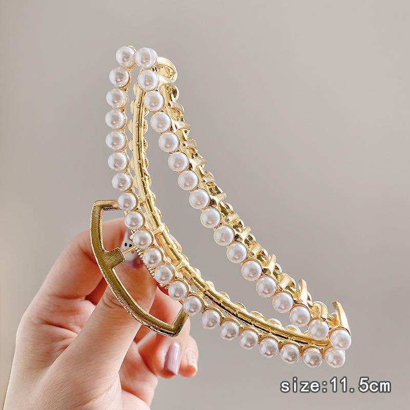 한국식 뒷머리 머리핀 여성용 활 펜던트 그랩 클립 진주 술 금속 상어 클립 디스크 헤어 클립 머리 장식스토어 가기
