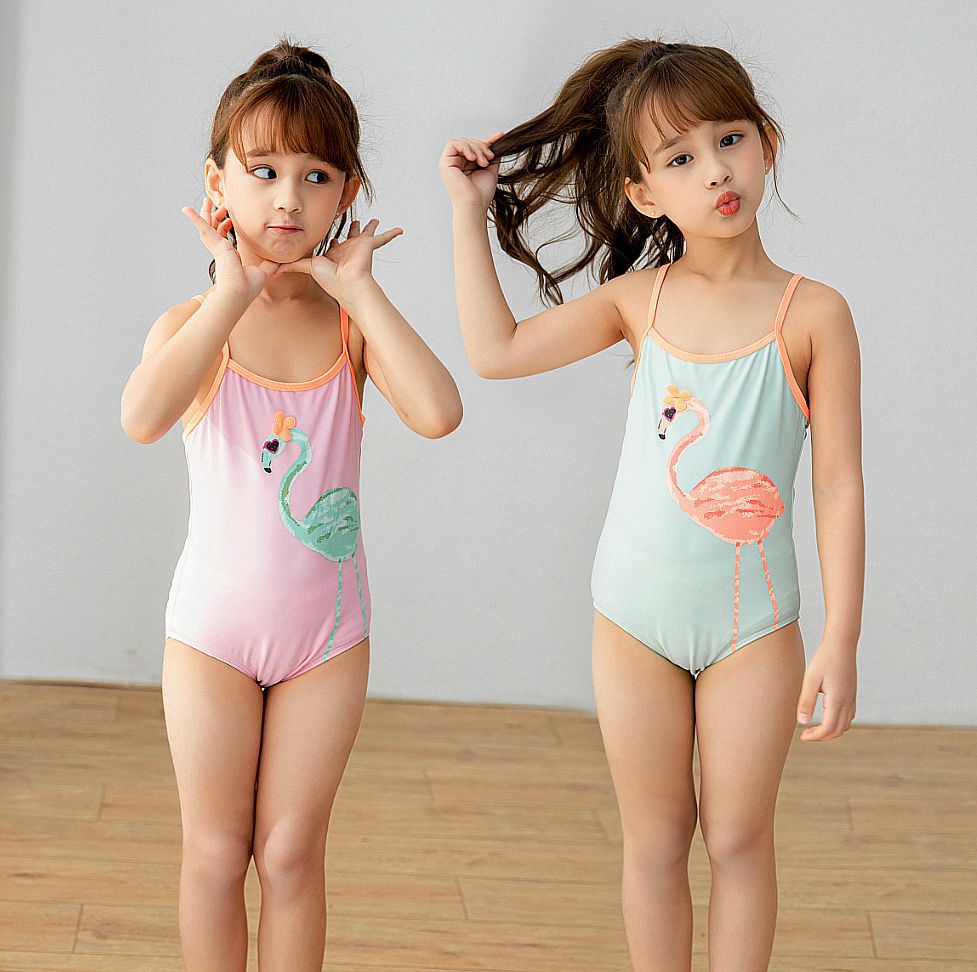 유럽풍 여아 원피스 수영복 플라밍고 만화 수영복 유아 아기 수영 학습용 통기성