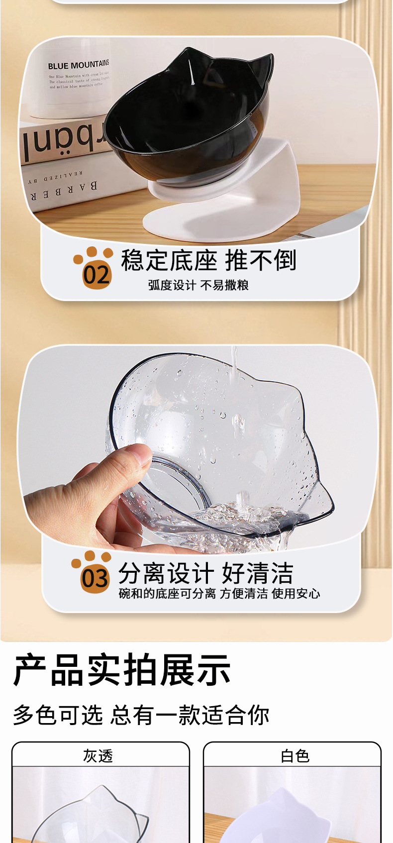 플라스틱 그릇 고양이 강아지 자동 급수기 경사형 싱글/더블 그릇 고양이 사료 그릇 고양이 그릇 애완동물 건강한 식사