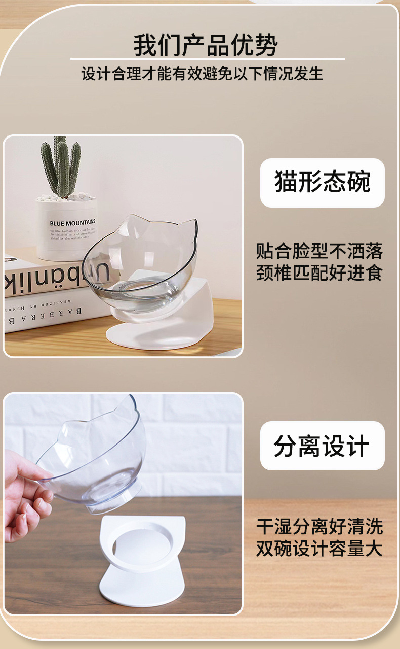 플라스틱 그릇 고양이 강아지 자동 급수기 경사형 싱글/더블 그릇 고양이 사료 그릇 고양이 그릇 애완동물 건강한 식사스토어 가기