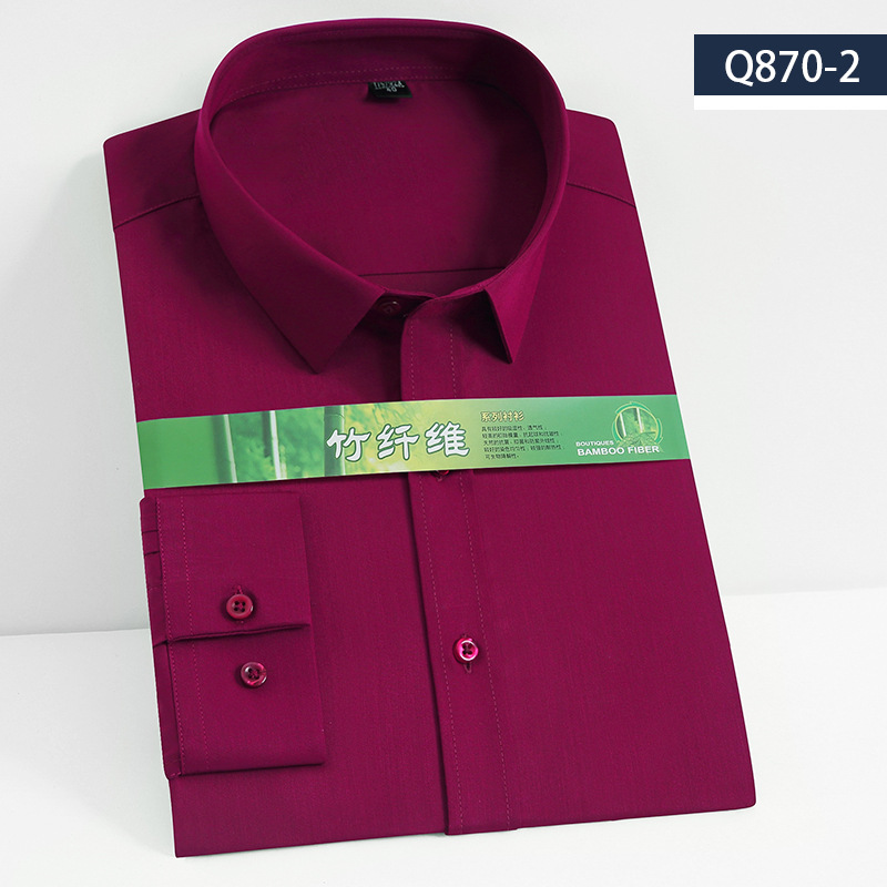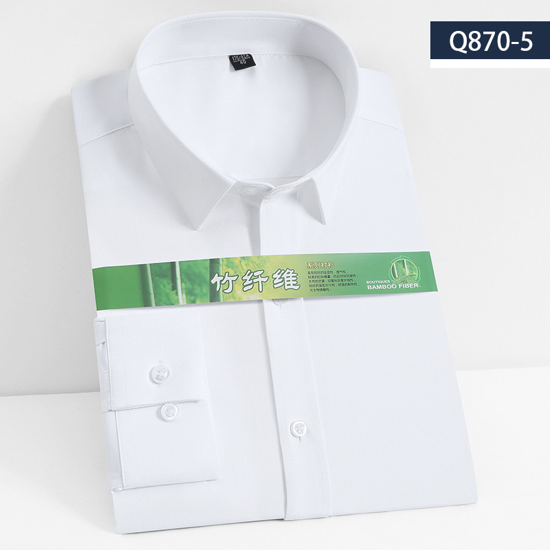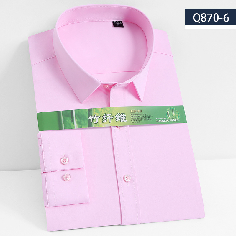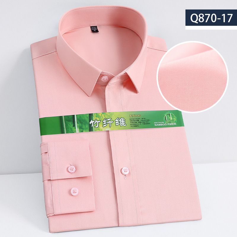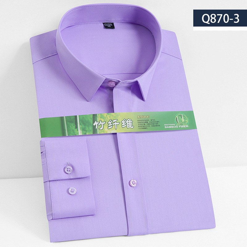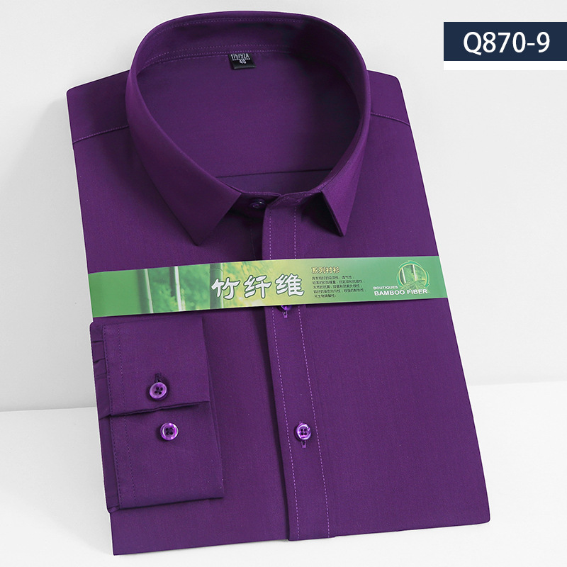 새로운 남자의 대나무 섬유 긴 소매 셔츠 봄과 가을 패션 단색 셔츠 비즈니스 캐주얼 탑 작업베이스 셔츠