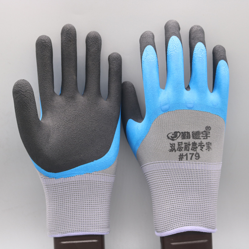 13 핀 통기성 2 중 폼 장갑 도매 라텍스 장갑 미끄럼 방지 내마모성 내유성 기계 보호 노동 장갑