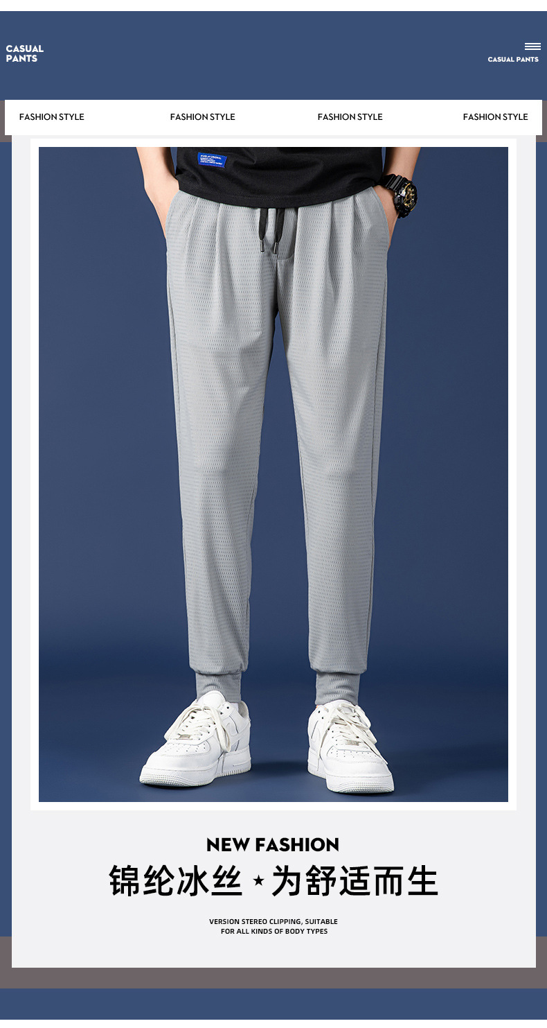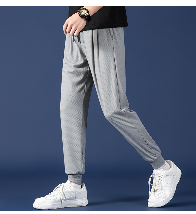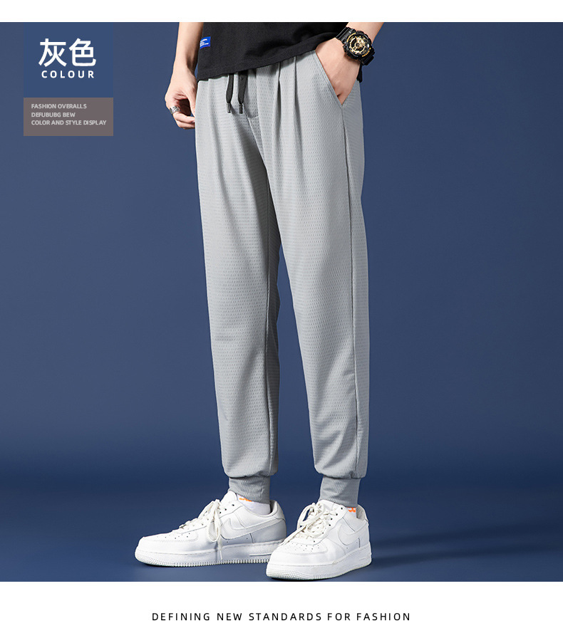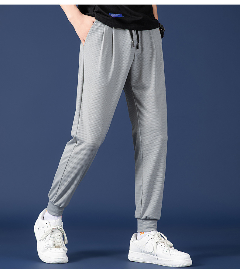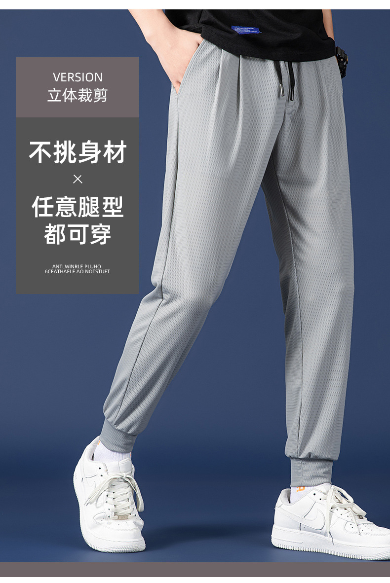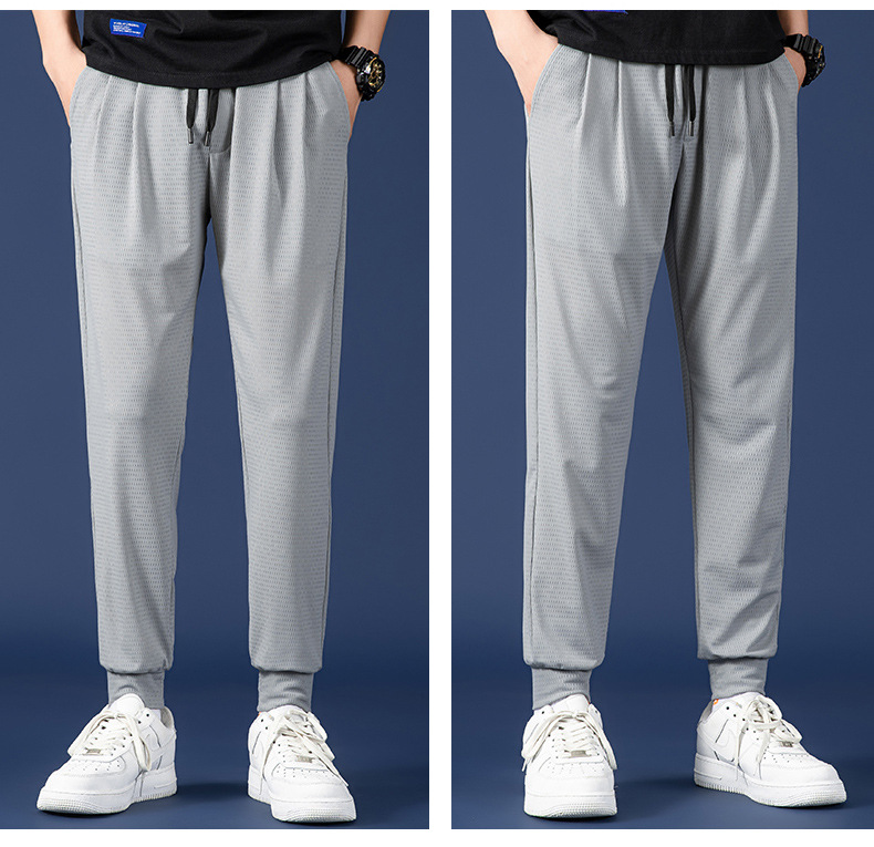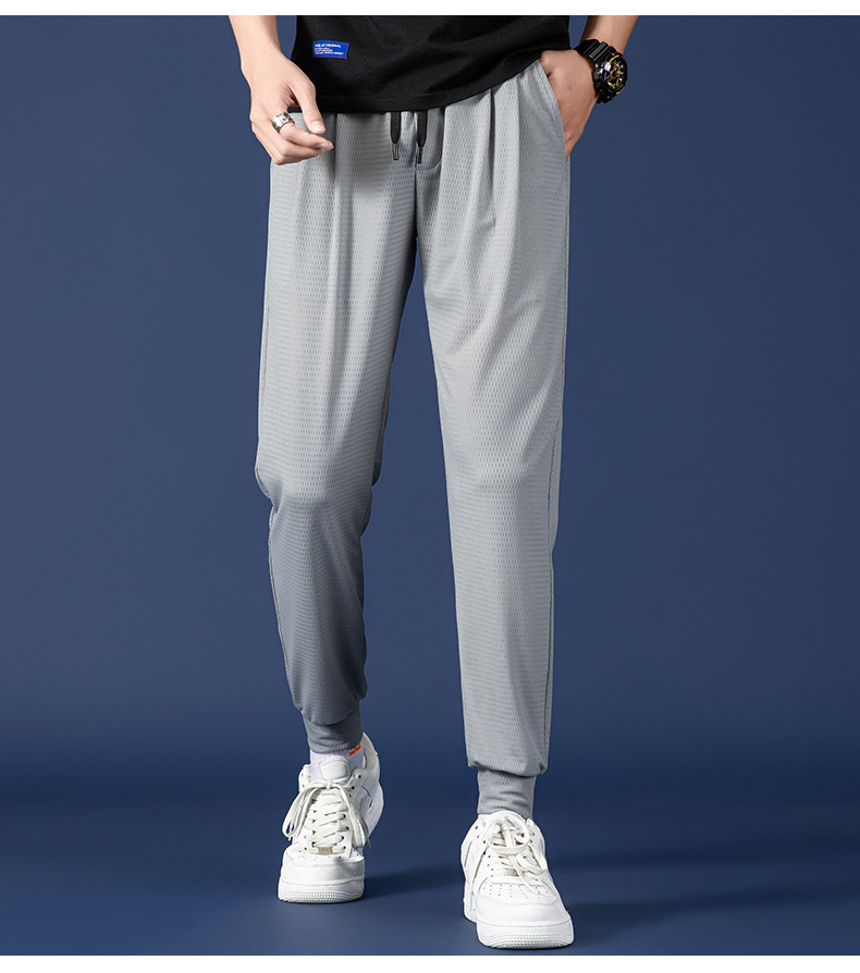 봄 여름 남성용 메쉬 아이스 실크 팬츠, 루즈한 핏, 큰 사이즈, 스포츠 통기성 9부 캐주얼 팬츠, 트렌디 브랜드 남성 팬츠스토어 가기