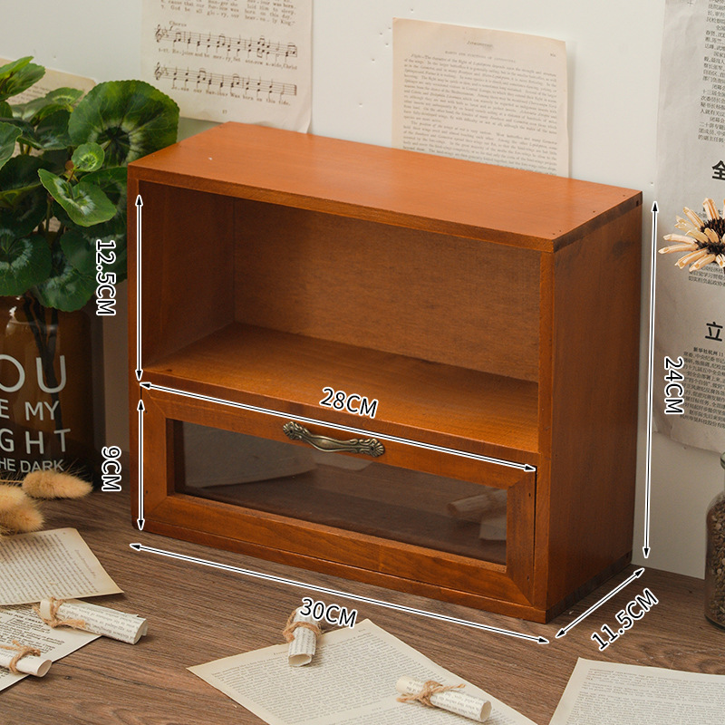 일본식 원목 화장품 보관함 연구 침실 사무실 홈 서류 정리 캐비닛 빈티지 나무 데스크탑 보관함