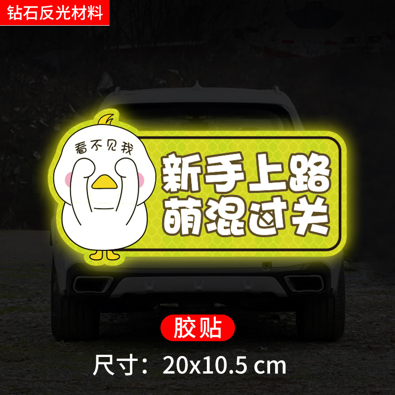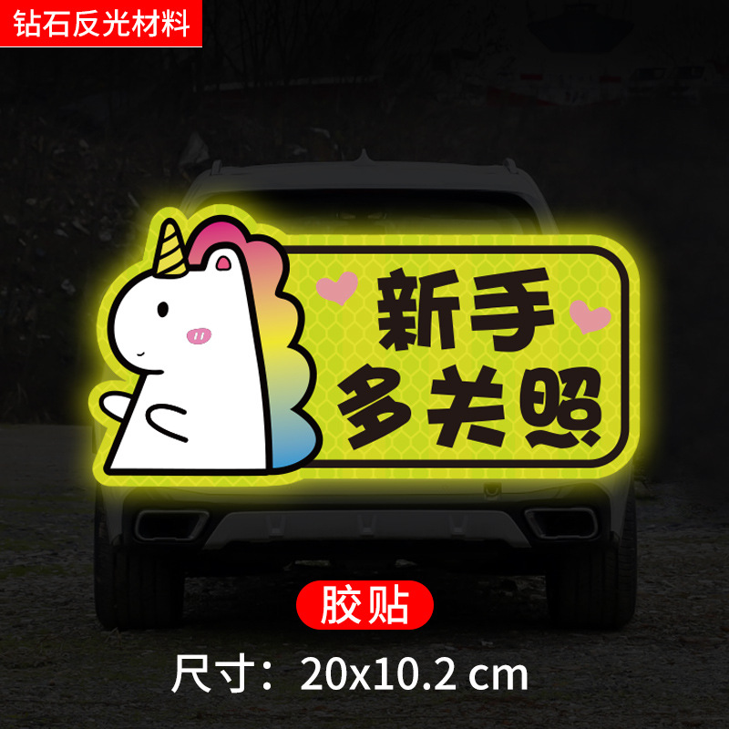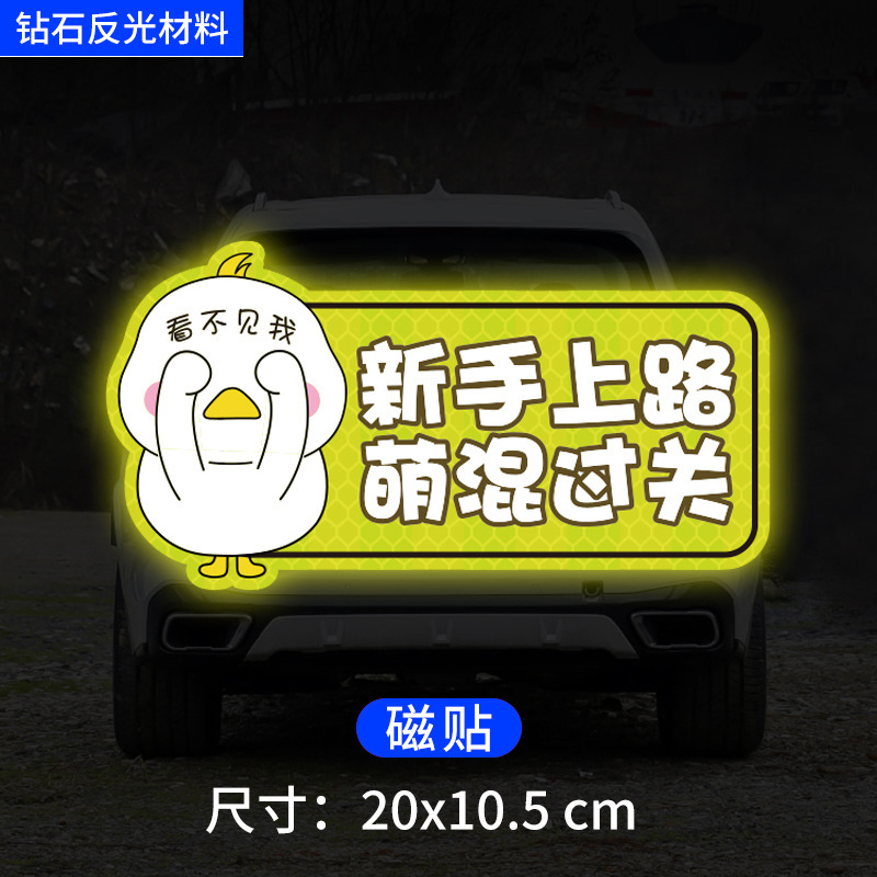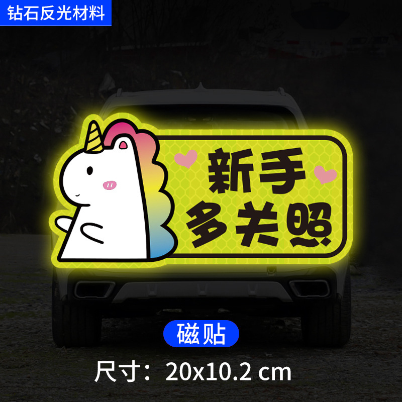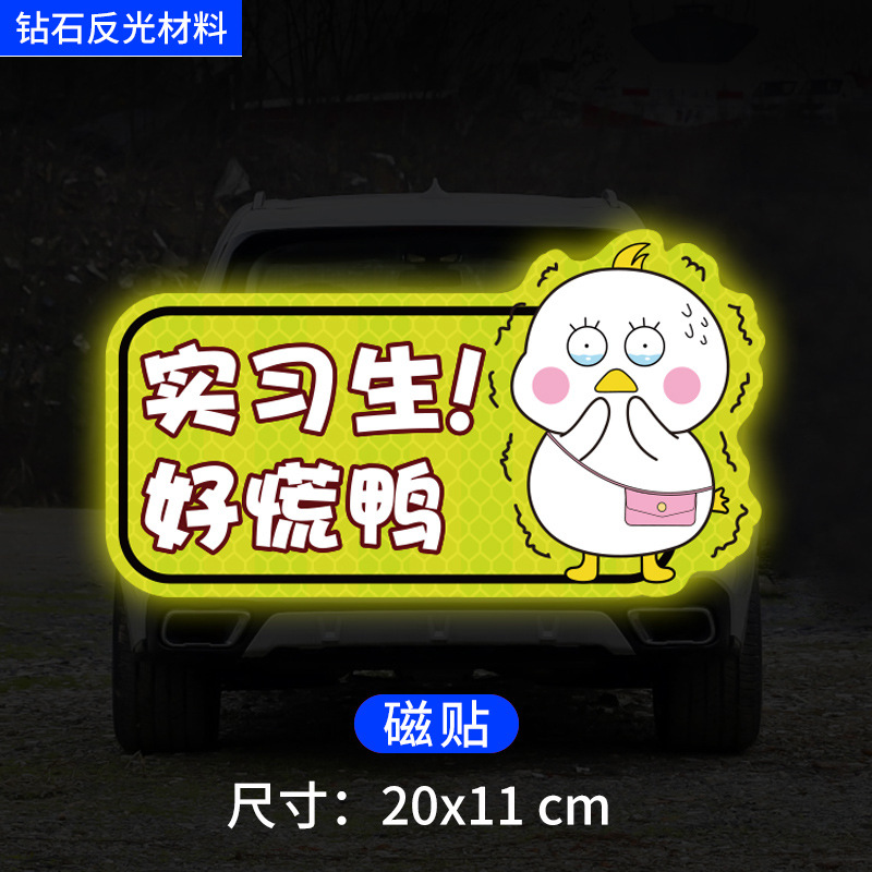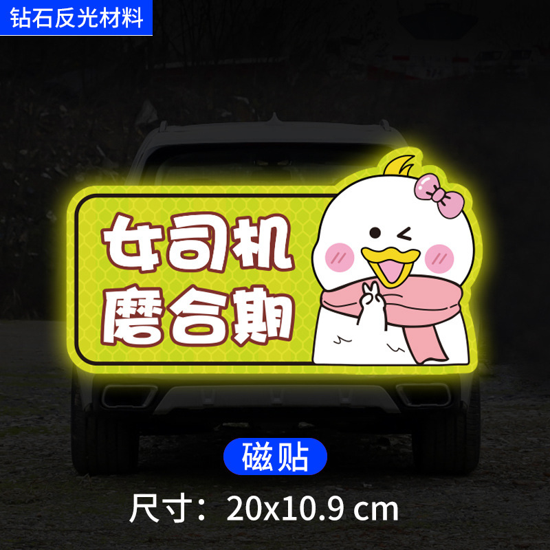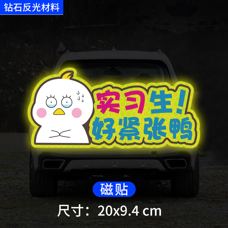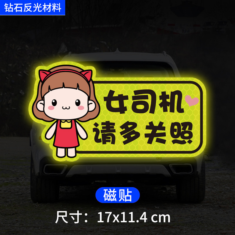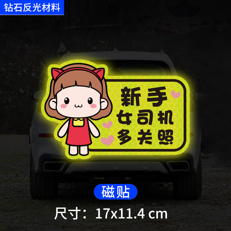 인턴쉽 자동차 스티커 도로에 초보자 여성 드라이버 창조적 인 반사 자동차 스티커 귀여운 만화 마그네틱 스티커 로고 여성 스티커