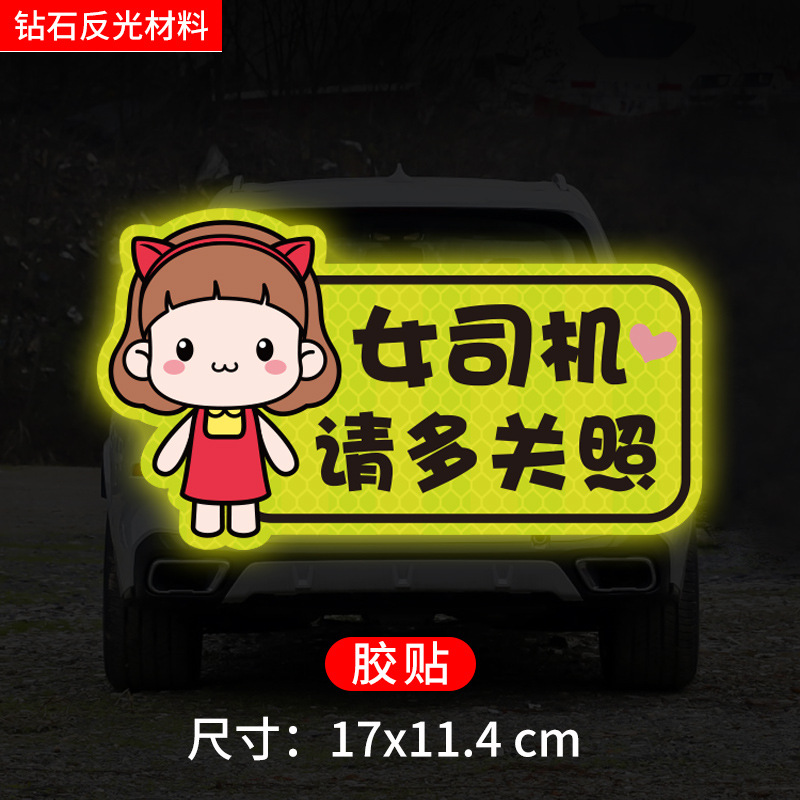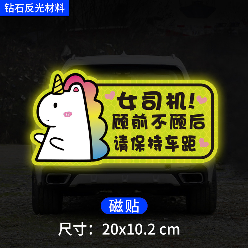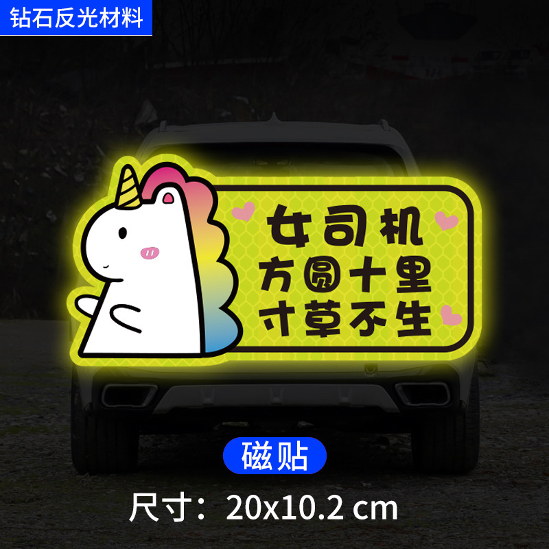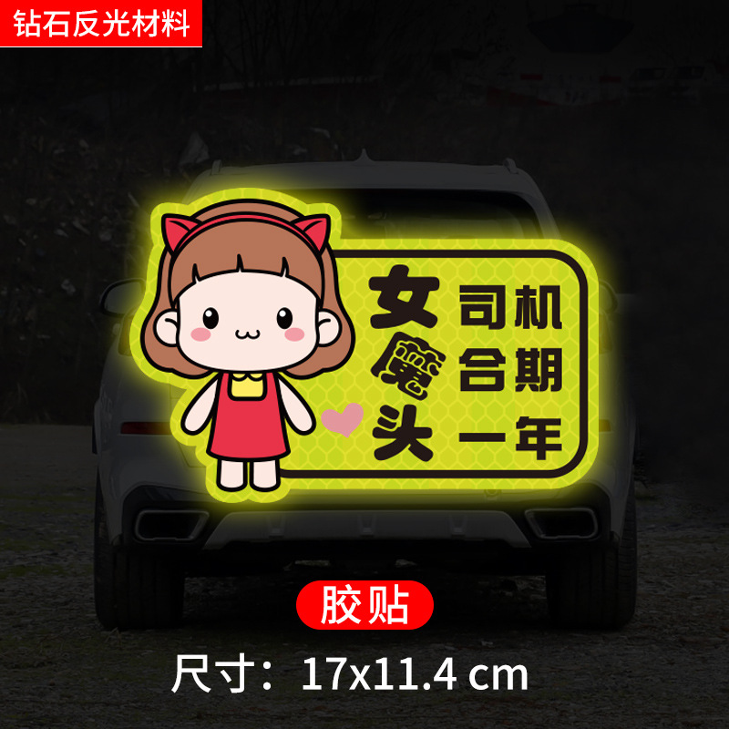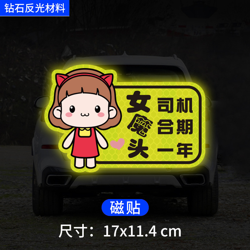 인턴쉽 자동차 스티커 도로에 초보자 여성 드라이버 창조적 인 반사 자동차 스티커 귀여운 만화 마그네틱 스티커 로고 여성 스티커스토어 가기