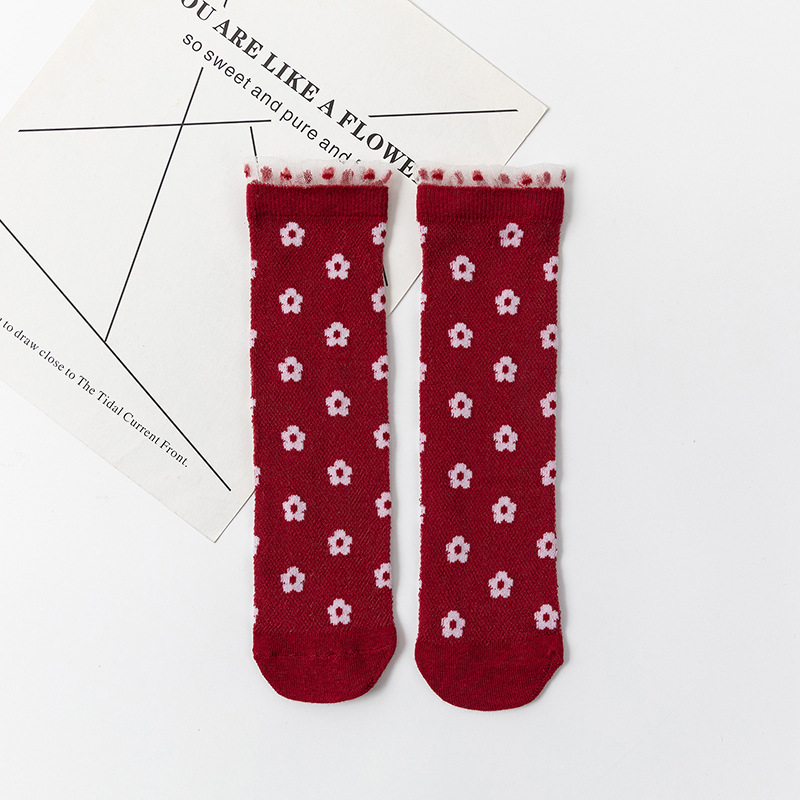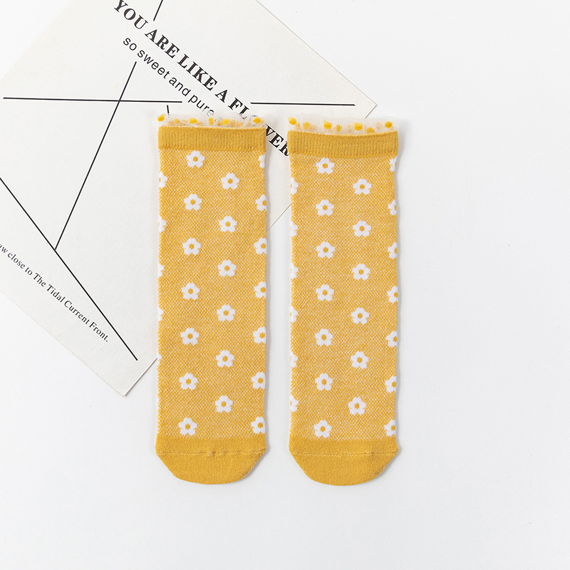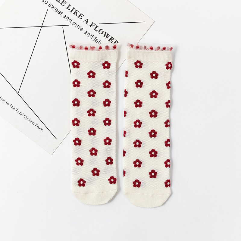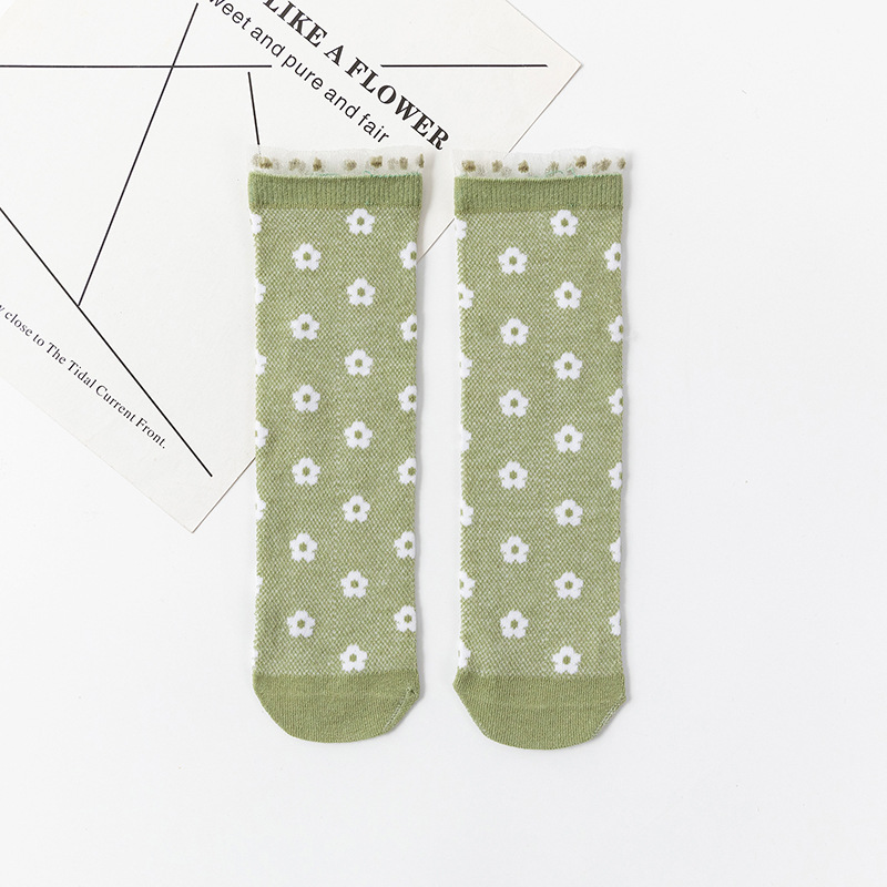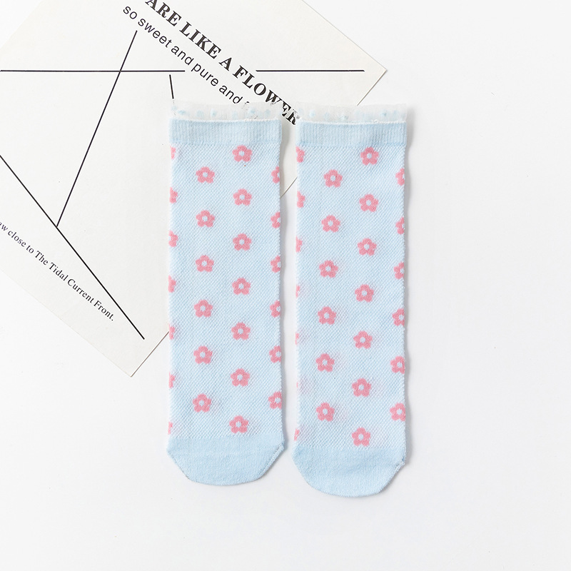 봄과 여름 새 여자 양말 얇은 메쉬 스타킹 신장 면화 일본 꽃 어린이 더미 양말 도매스토어 가기