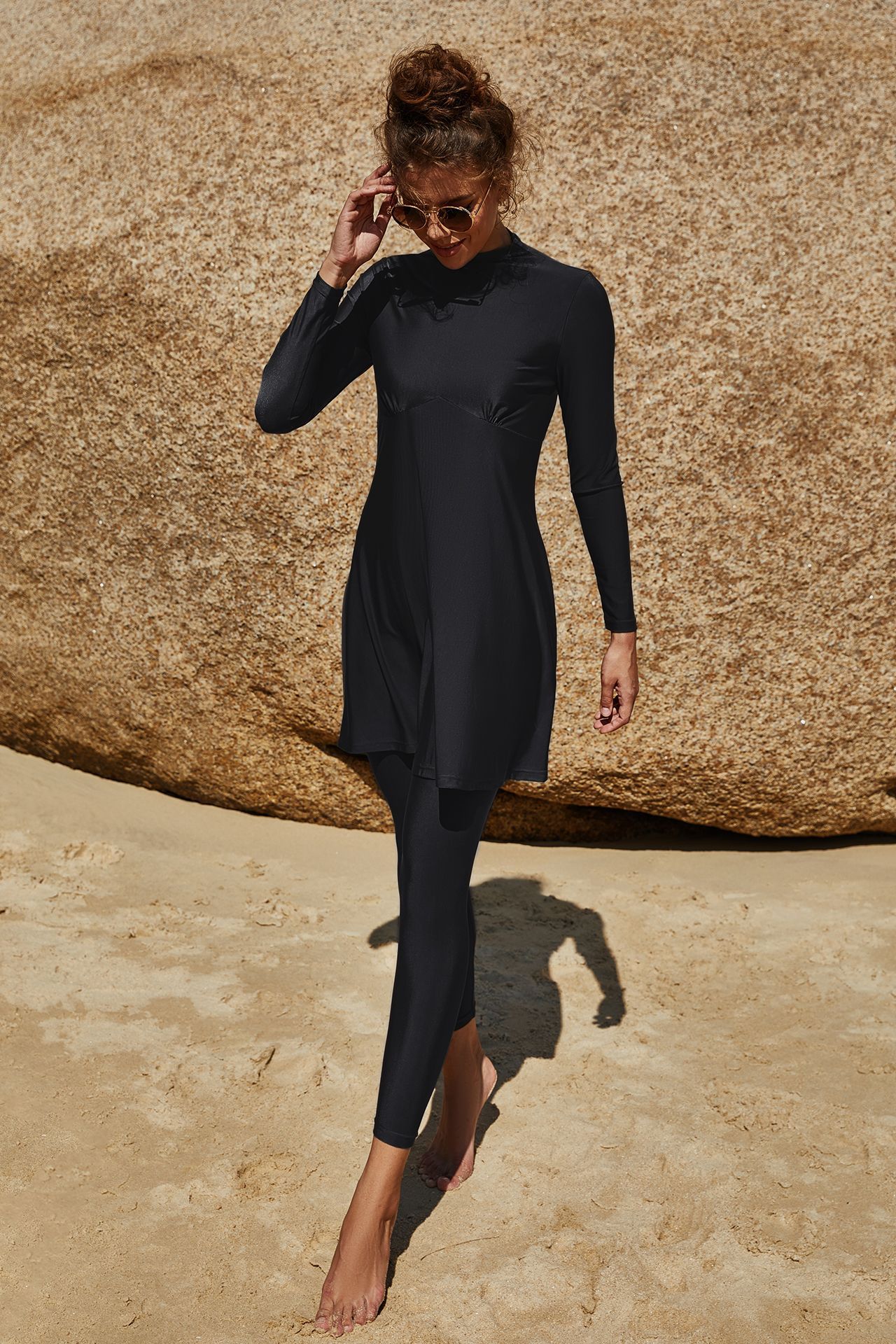여름 아라비안 긴 소매 수영복 세트 보수적 인 해변 서핑 수영복 주름 하프 하이 칼라 수영복 2 종 세트스토어 가기