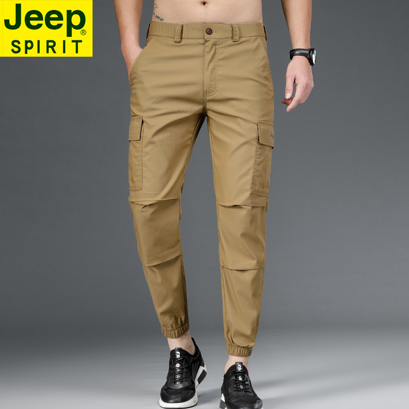 새로운 여름 얇은 다리 툴링 바지 남성용 슬림핏 스트레치 멀티 포켓 청소년 트렌디 스포츠 캐주얼 바지
