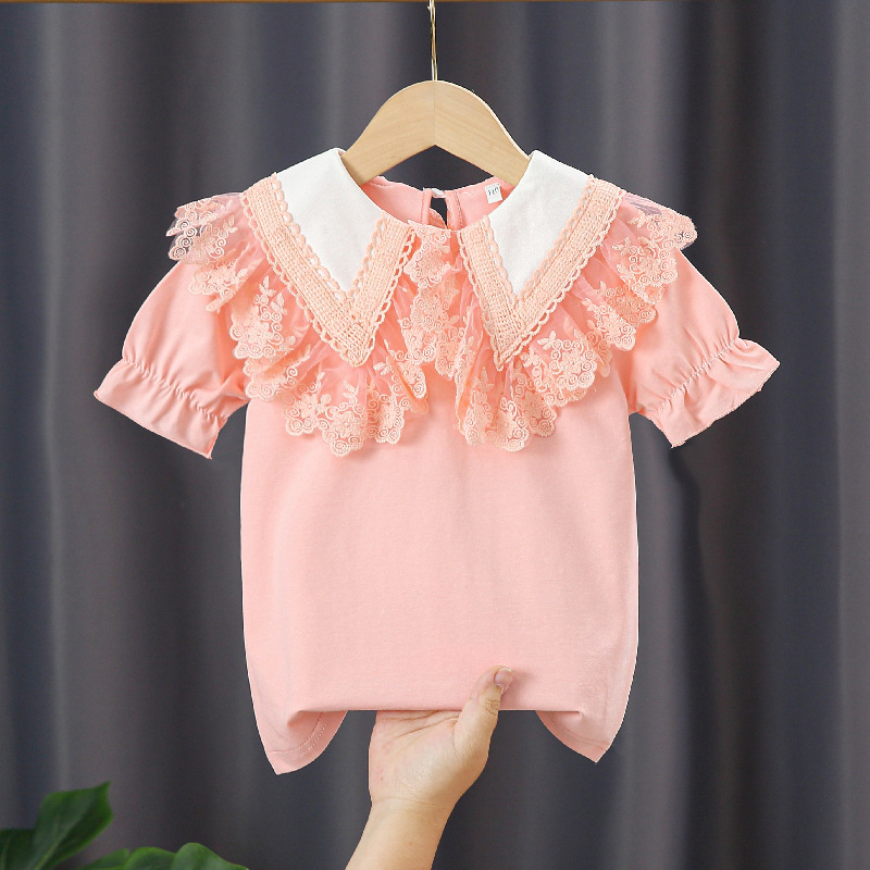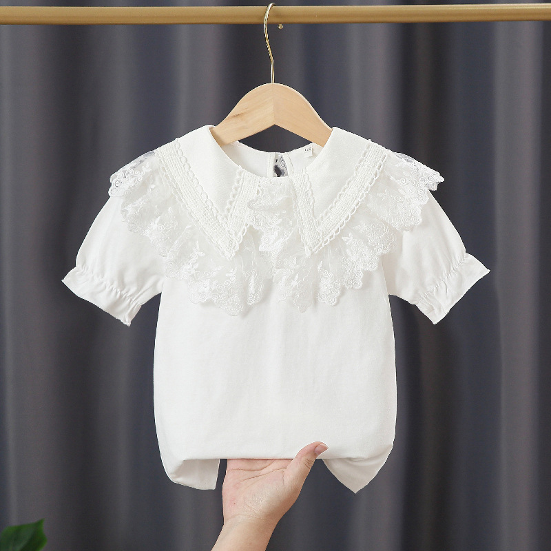 여아 반팔 티셔츠 여름 얇은 세련된 어린이 순면 티셔츠 인형 칼라 탑 큰 어린이 베이스 셔츠 트렌디 6