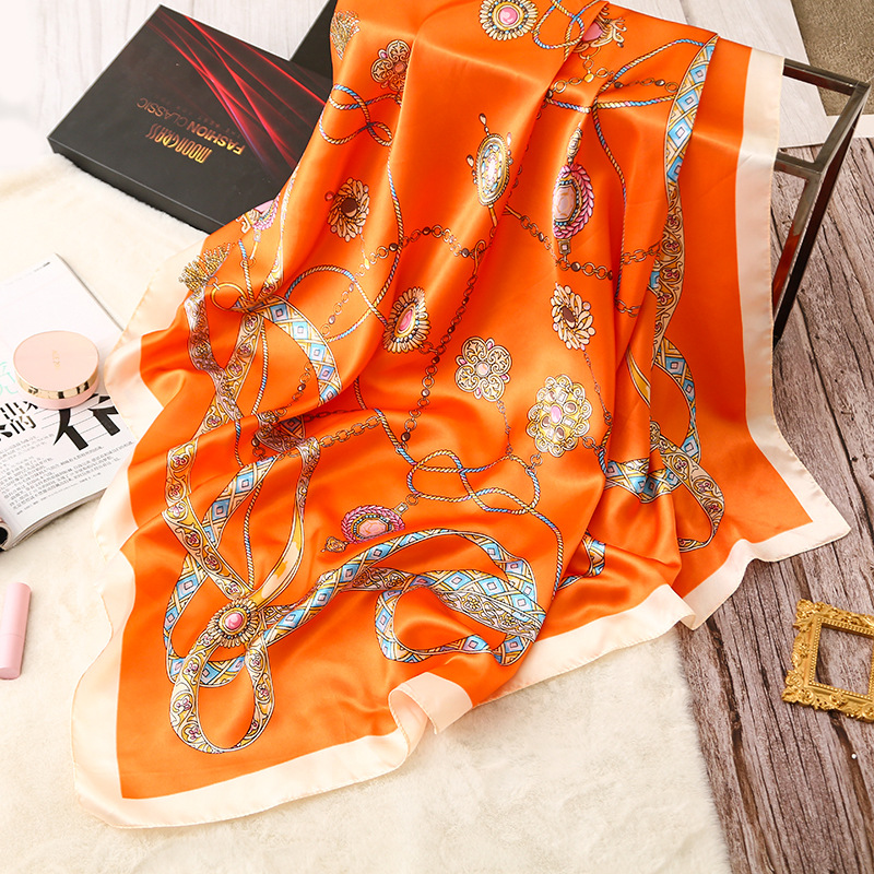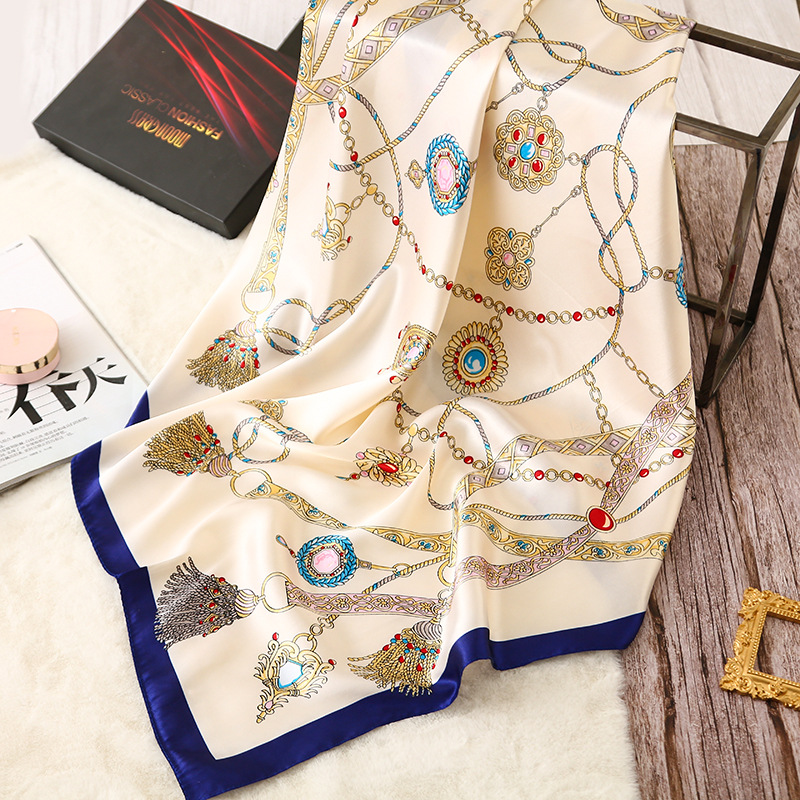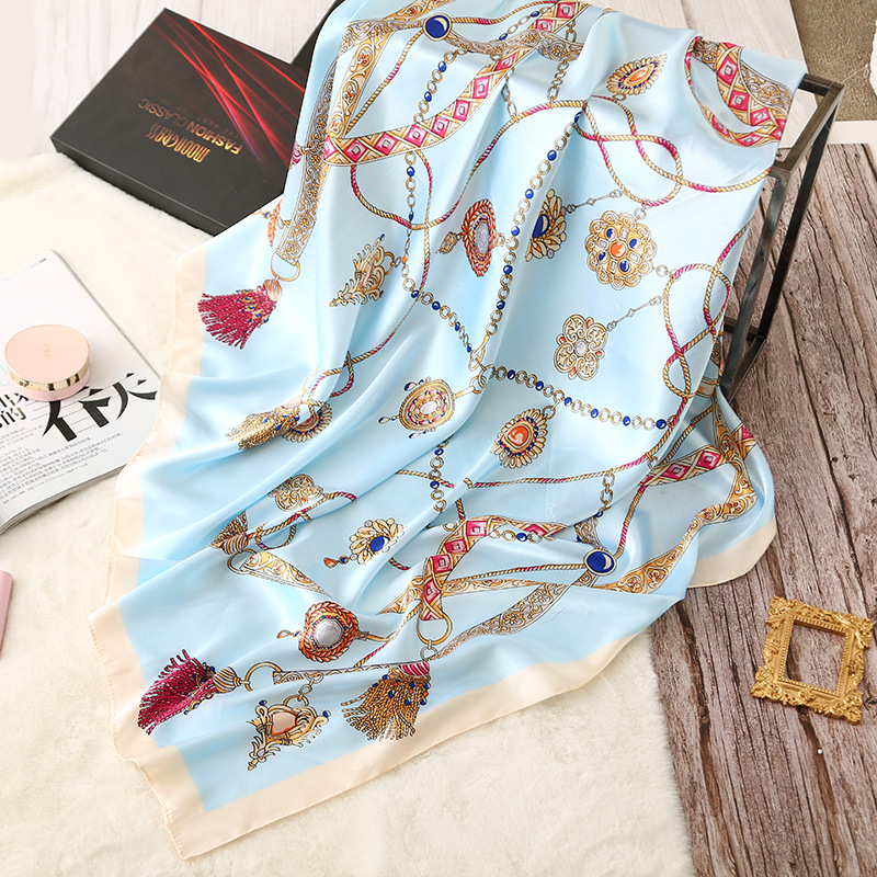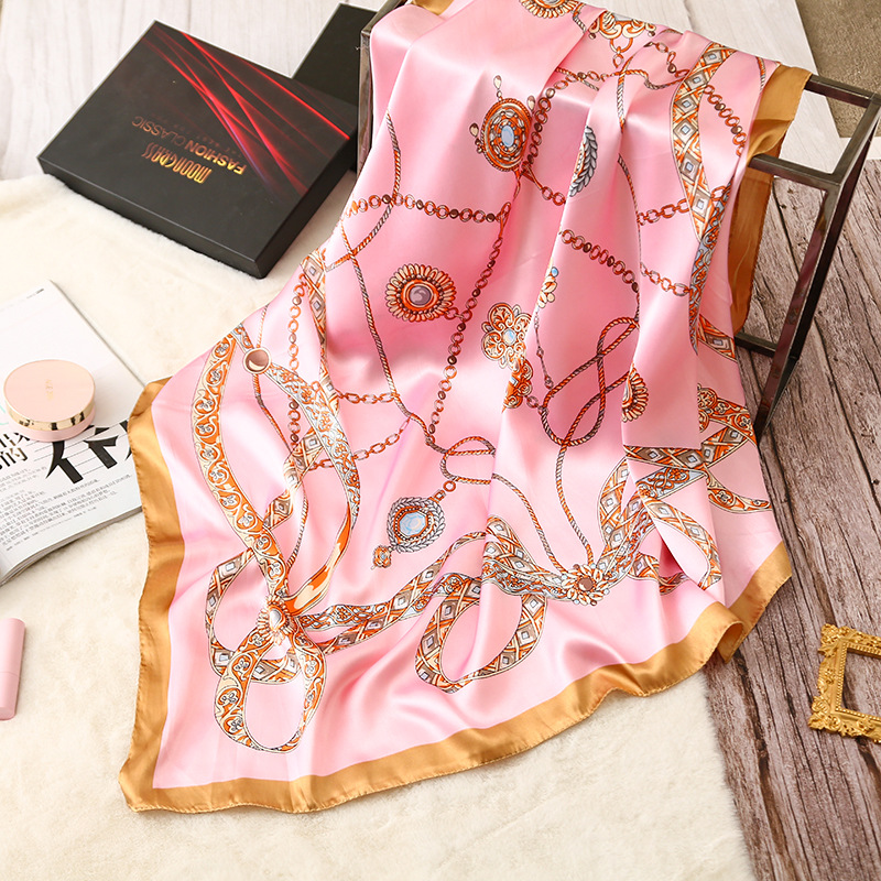 봄과 여름 체인 인쇄 스카프 한국 패션 복고풍 장식 스카프 90cm 스카프 선 스크린 목도리 대형 사각형 스카프