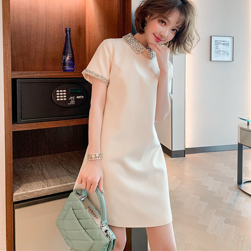 Xiaoxiangfeng 중공업 구슬과 다이아몬드 인형 칼라 스커트 2025 봄과 여름 새로운 틈새 레이디 스타일 드레스스토어 가기