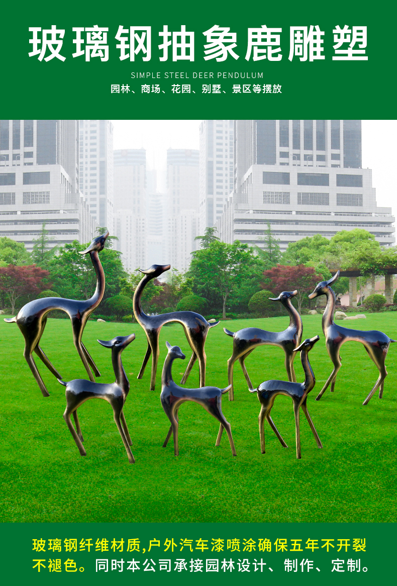 야외 추상 시카 사슴 유리 섬유 강화 플라스틱 조각 기하학적 동물 장식품 정원 관광 명소 부동산 커뮤니티 장식스토어 가기