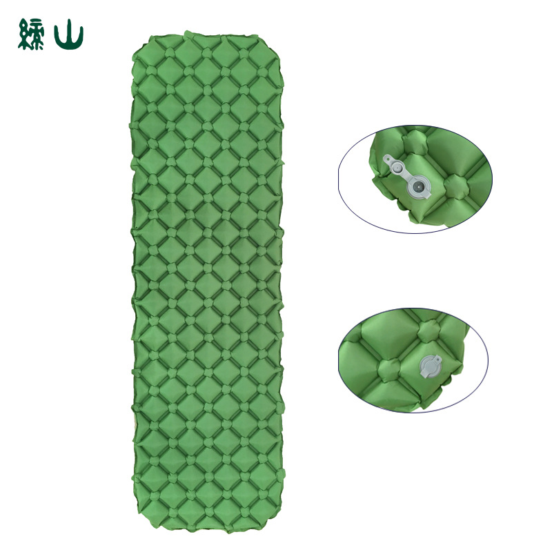 绿山超轻菱形蛋槽式TPU充气睡垫,采用轻量化复合尼龙面料,新工艺,经典造型,绿色环保。新颖的菱形表面设计,造型美观,使充气表面更加柔软舒适,并且受力均匀。收纳体积小,携带方便,不占空间,重量轻,是户外野餐、登山露营、办公午休、长途旅行睡觉的好助手!