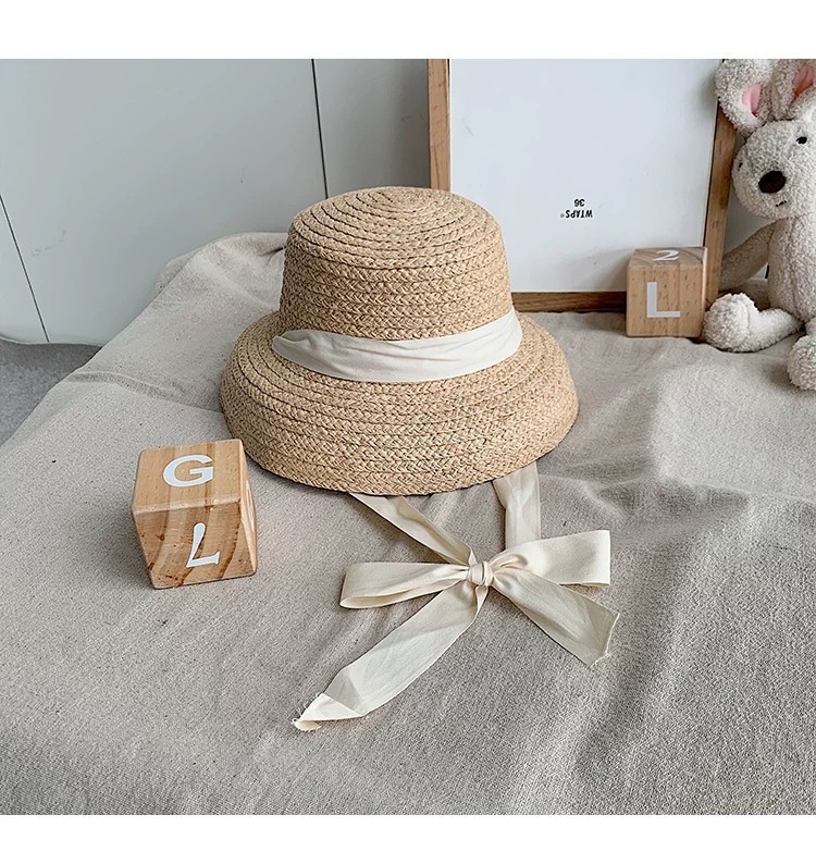 어린이 밀짚 모자 Charafi 밀짚 모자 새로운 프랑스 복고풍 태양 모자 관대 한 햅번 스타일 달콤한 스트랩 여행 유행스토어 가기