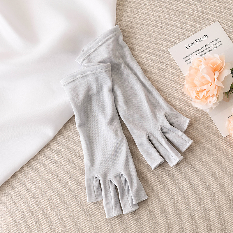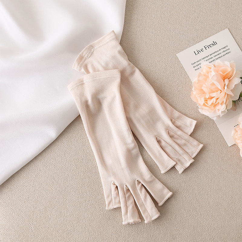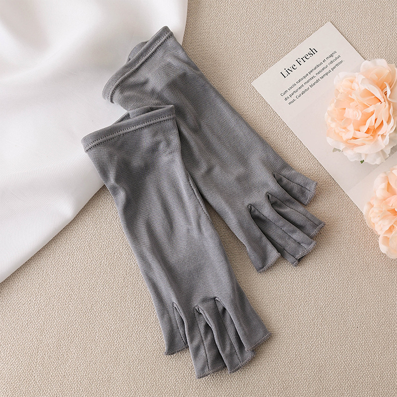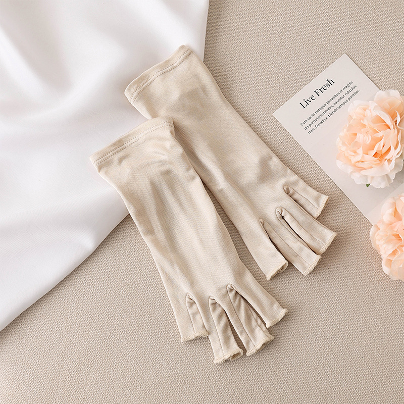 유웨 아마존 크로스보더 2025 자외선 차단 장갑 100% 실크 여름 운전 및 라이딩용 통기성 반손가락 장갑