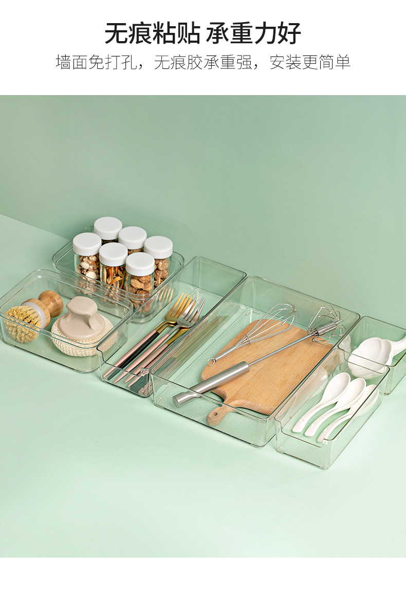 LiGo 데스크탑 서랍 보관함 일본식 파티션 주방 식기 투명 플라스틱 파티션 문구 주최자 작은 상자스토어 가기