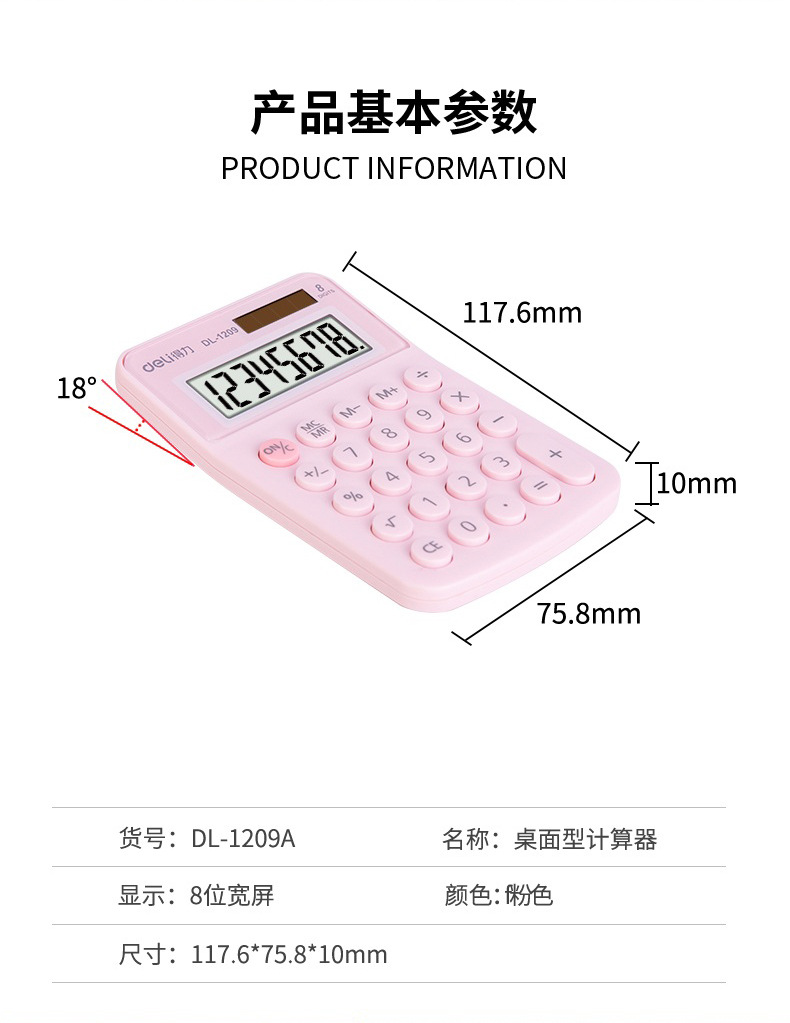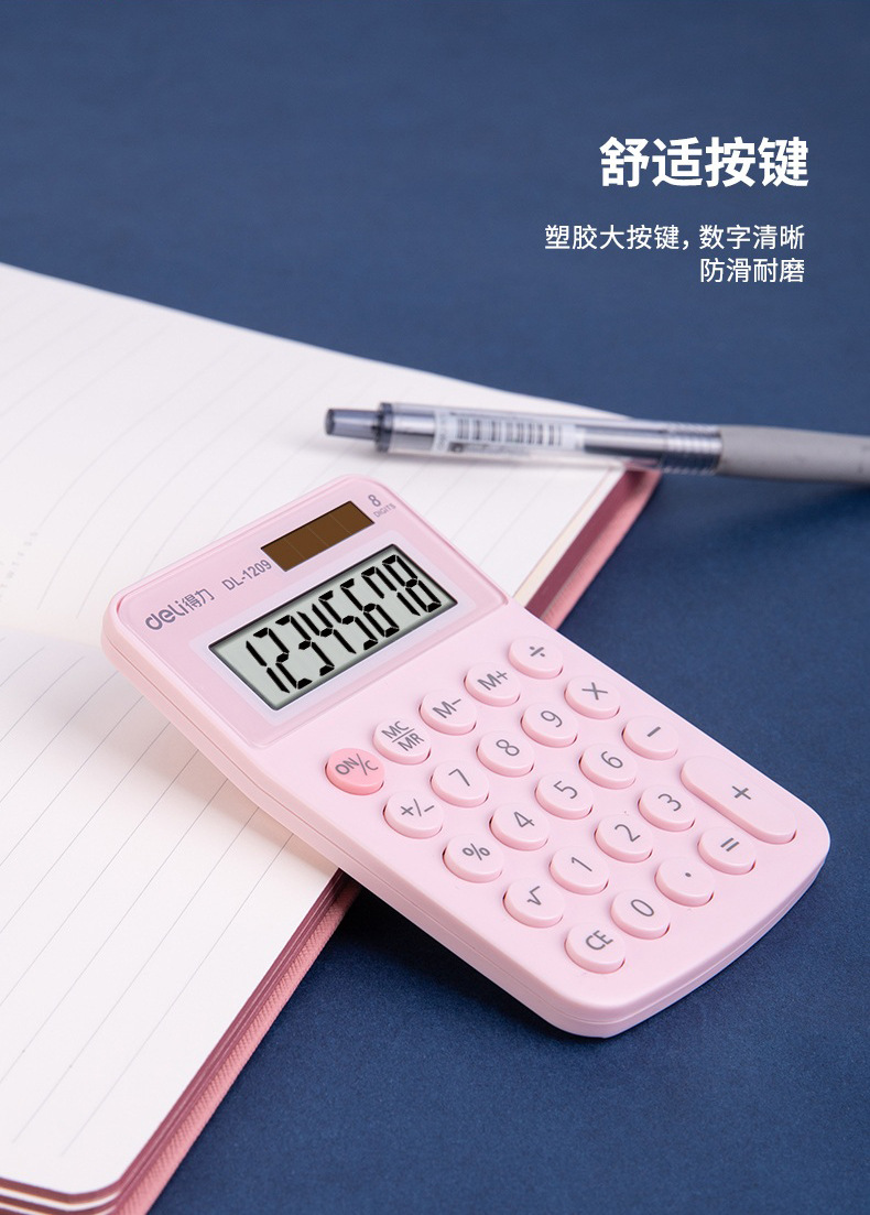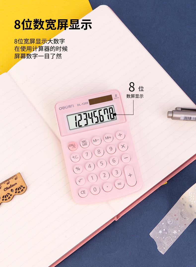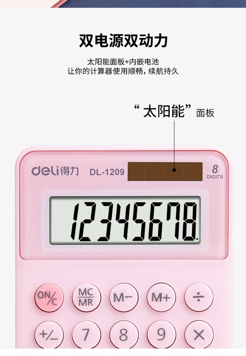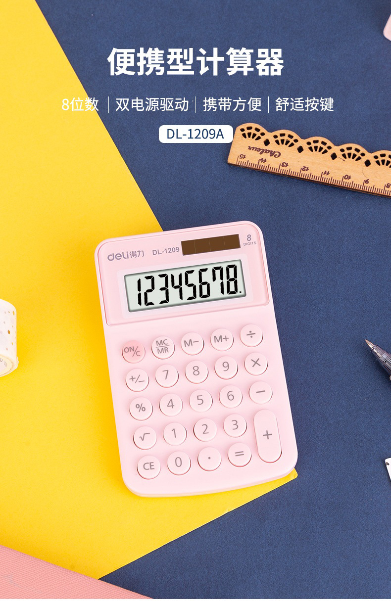 델리 1209A 다채로운 캔디 컬러 솔라 듀얼 파워 8 비트 디스플레이 간단한 크리에이티브 오피스 휴대용 컴퓨터스토어 가기
