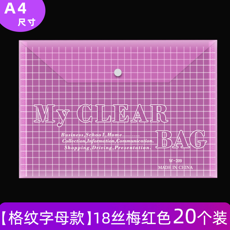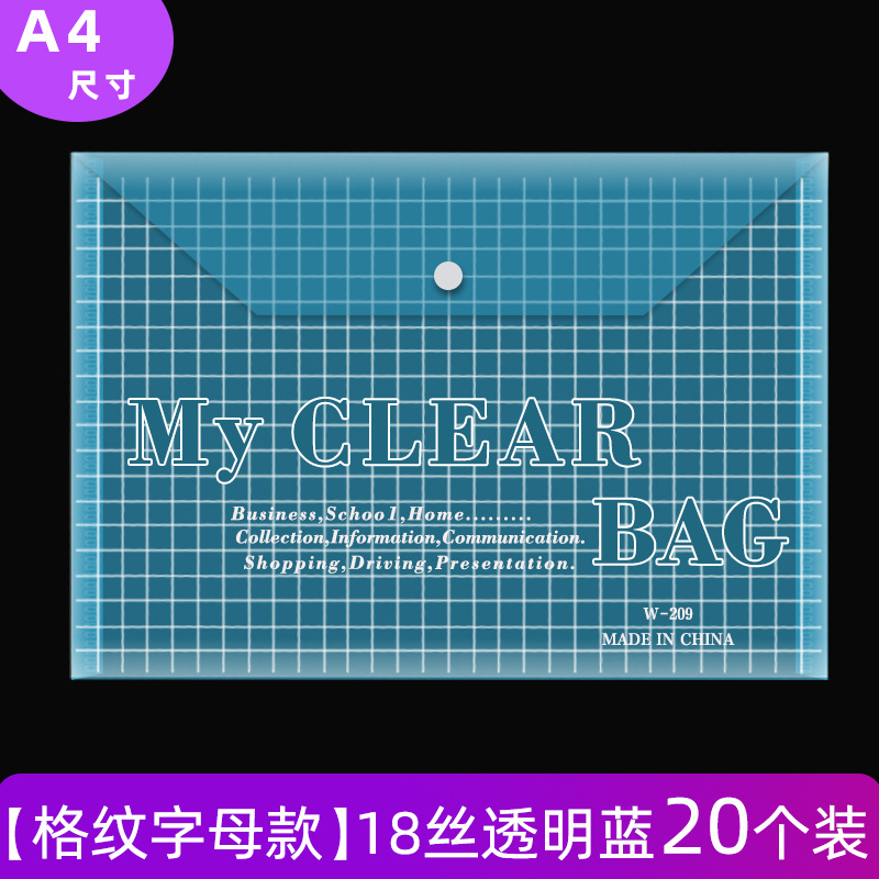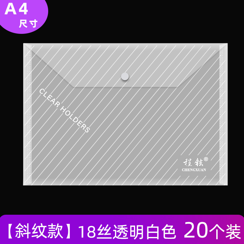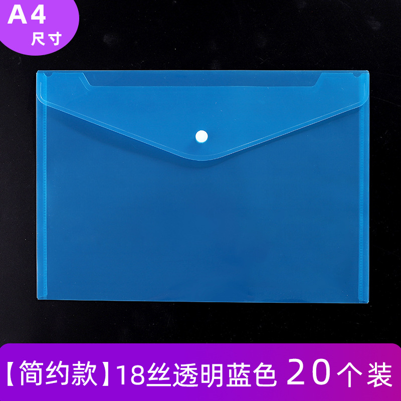 20 팩 두꺼운 문서 가방 투명 a4 인쇄 로고 스냅 버클 플라스틱 정보 가방 청구서