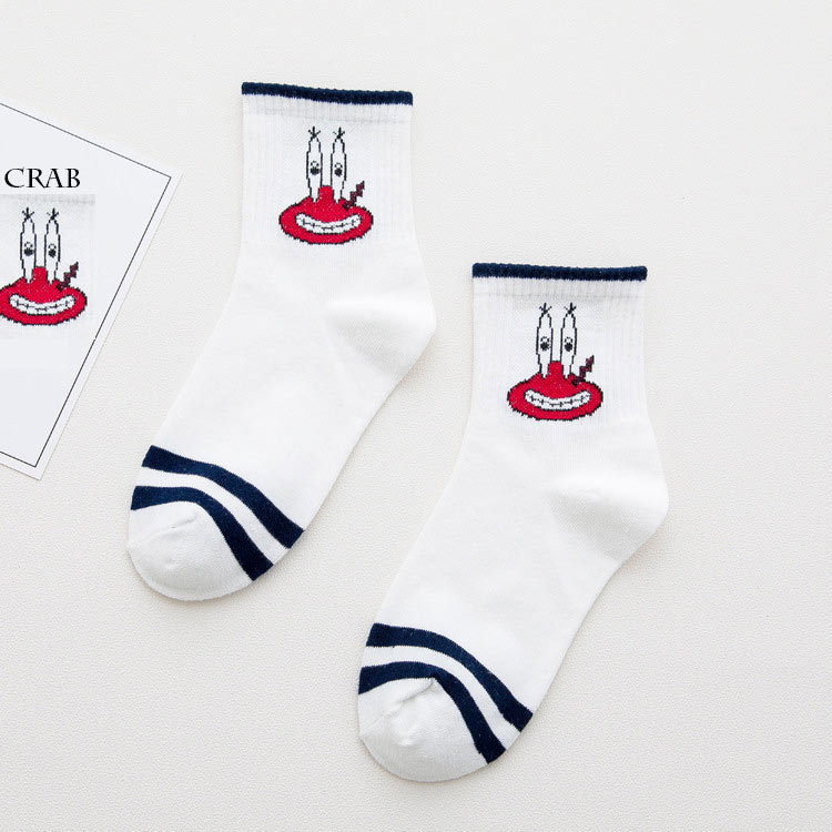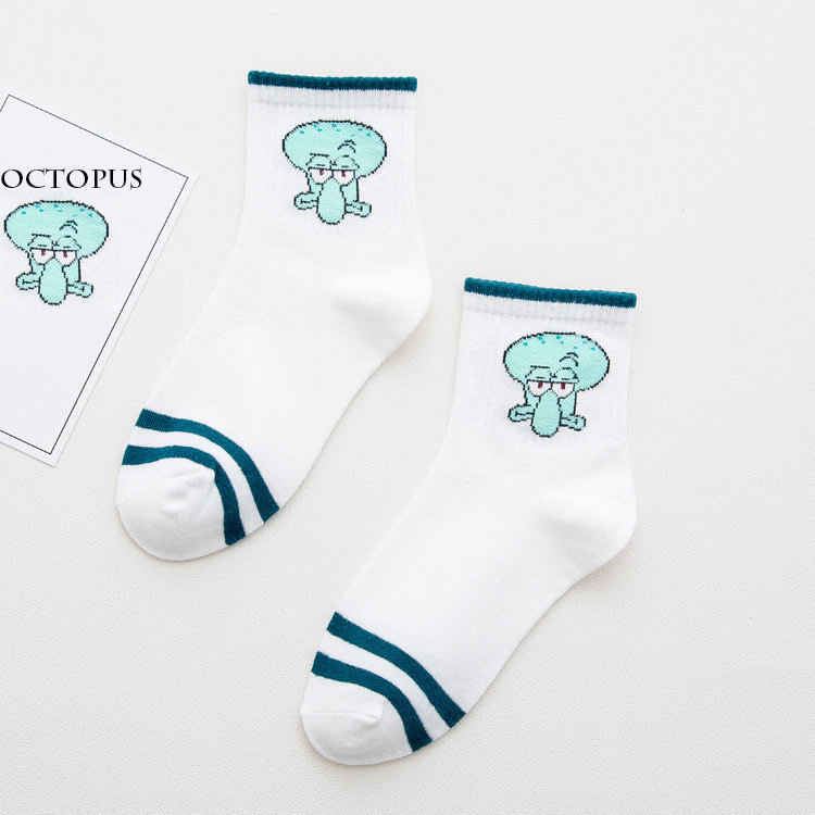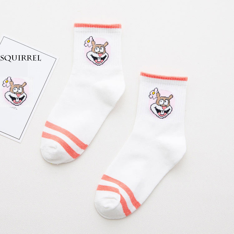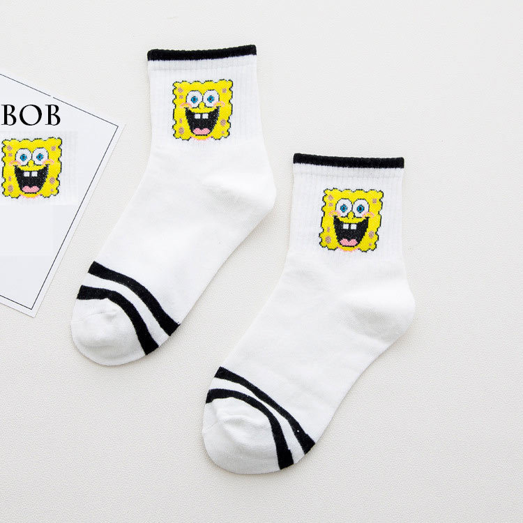 스폰지밥 시리즈 중목 양말 JK 소녀 스포츠 면 양말 니트 폴리에스터 면 양말 여성용 짧은 양말 중목 스포츠 양말