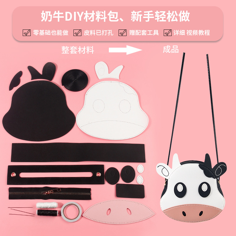 흑백 귀여운 소 가방 새로운 패션 DIY 귀여운 짠 선물 어깨 슬링 수제 수제 DIY 재료 가방
