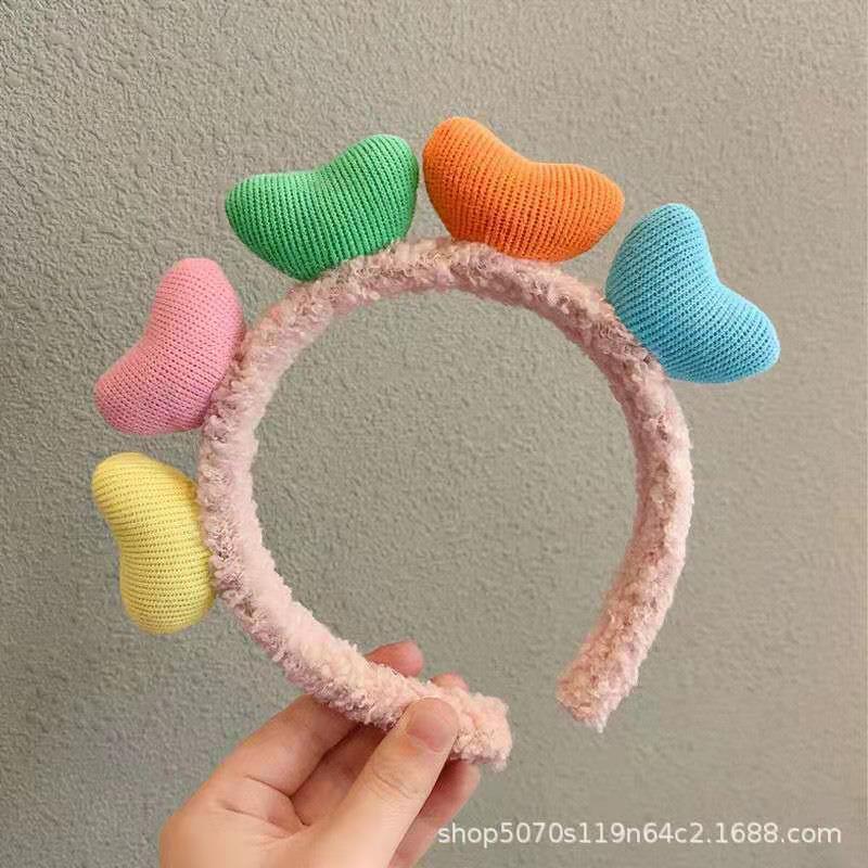 귀여운 판매 귀여운 인터넷 빨간 머리 학생 소녀 심장 무지개 머리띠 헤어 액세서리 한국 사랑 색 머리띠를 시작