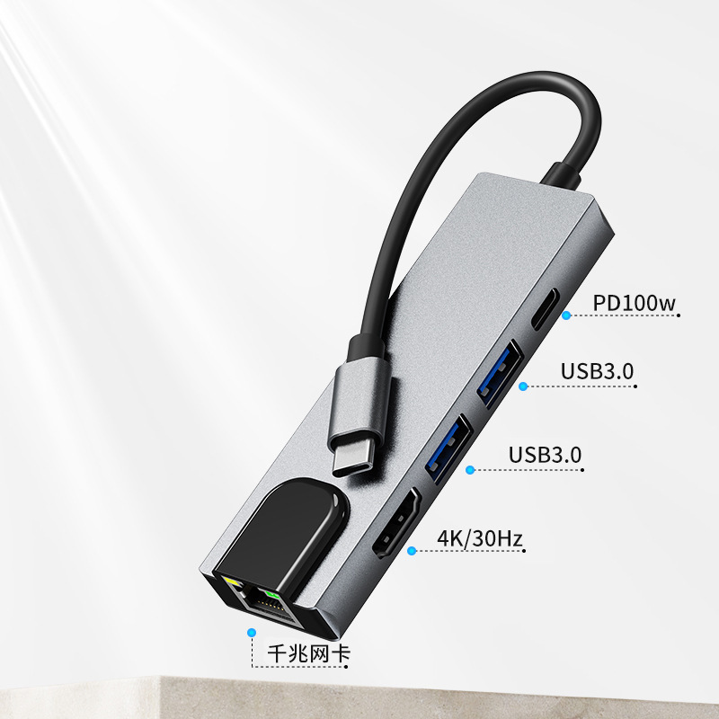 • Type-C-USB3.0 USB2.0 HDMI 기가비트 RJ45 PD 5-in -1