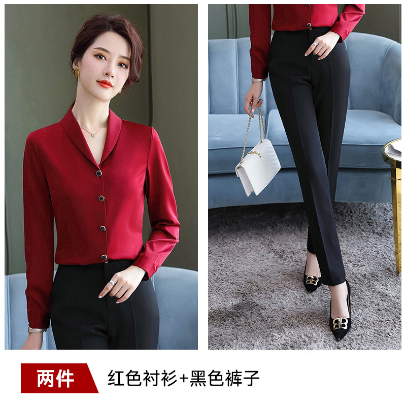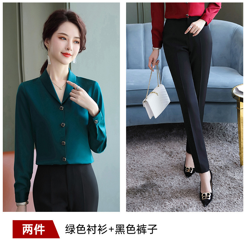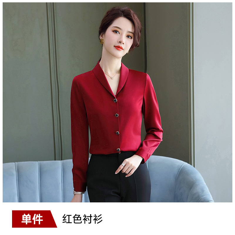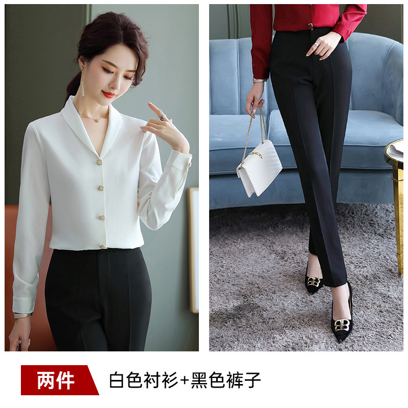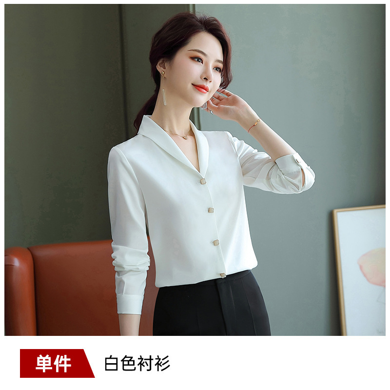 비즈니스웨어 쉬폰 화이트 셔츠 여성용 한국식 긴팔 초가을 얇은 느슨한 흰색 셔츠 정장 작업복스토어 가기