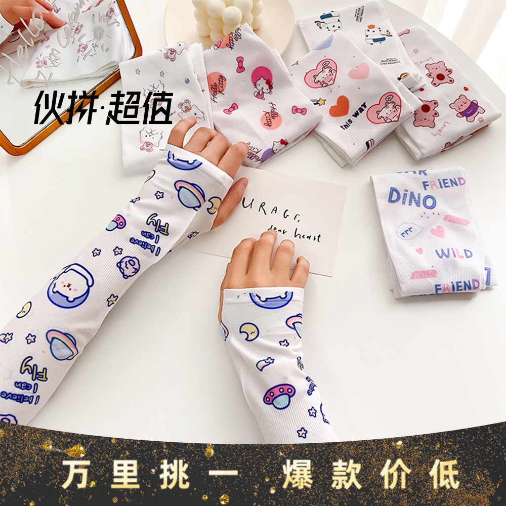 2021 새로운 여름 차양 보호 외부 태양 보호 얼음 소매 여자의 한국 스타일 만화 인쇄 소매 얼음 멋진 장갑 팔 보호