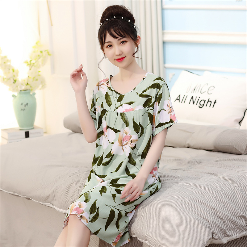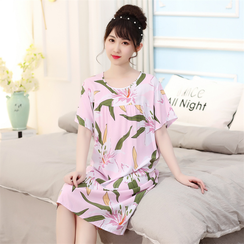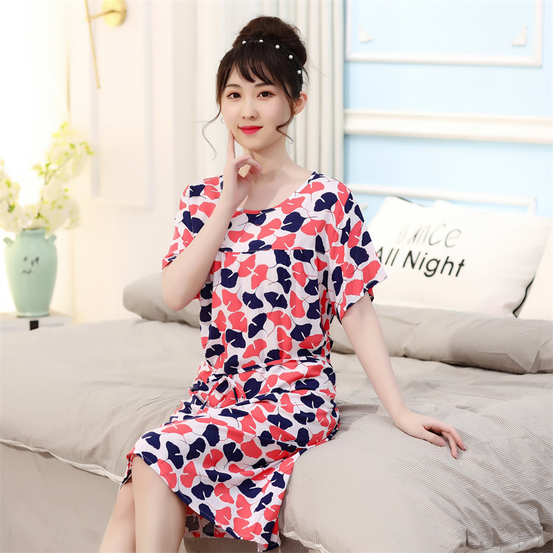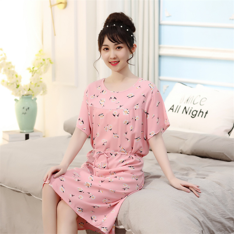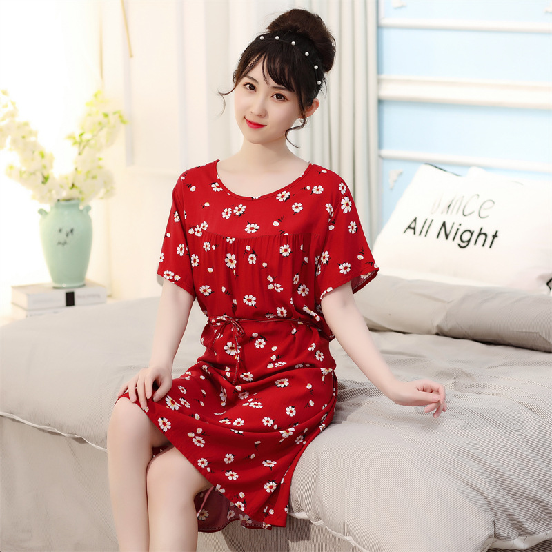 벨트 묶는 밧줄 40 면 실크 잠옷 여자의 반팔 플러스 사이즈 잠옷 여름 인공 면 느슨한 편안한 가정 의류스토어 가기