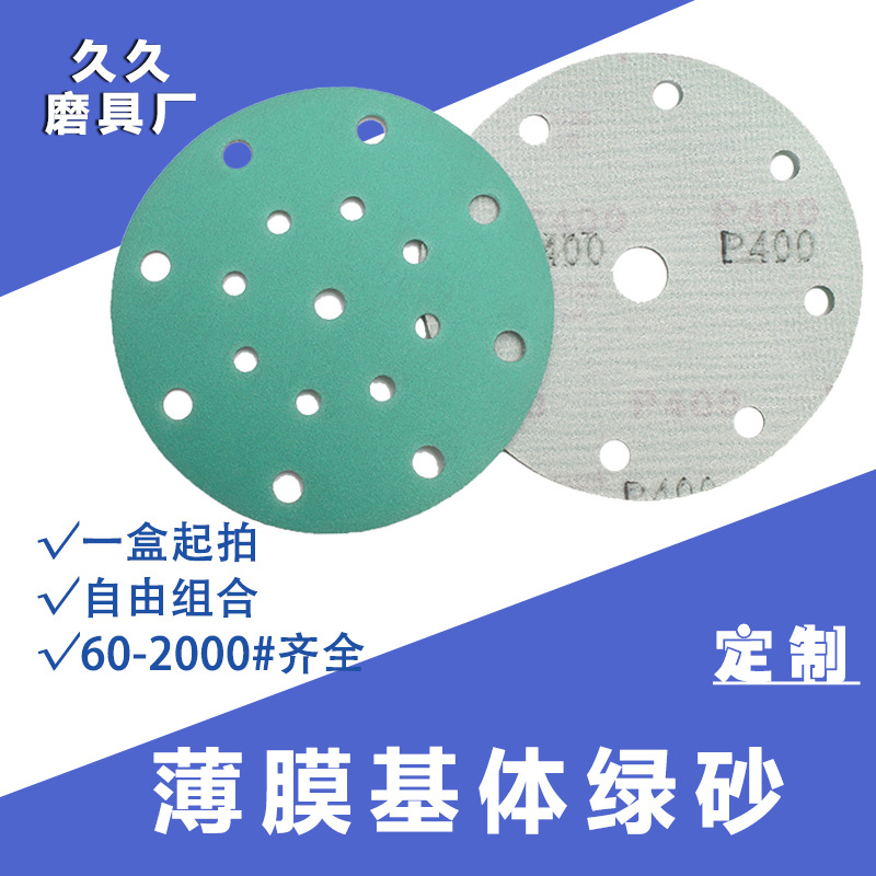 제조업체는 6inch 필름 매트릭스 녹색 모래 막힘 방지 및 내마모성 건식 연삭 및 수성 연삭 이중 목적 플로킹 사포 및 브러시드 사포를 맞춤 제작합니다.