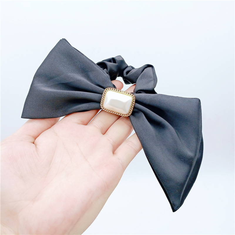 한국 단색 복고풍 우아한 올 매치 스퀘어 화이트 프릴 러리 활 헤어 밴드 간단한 포니 테일 헤드 로프 대장 링