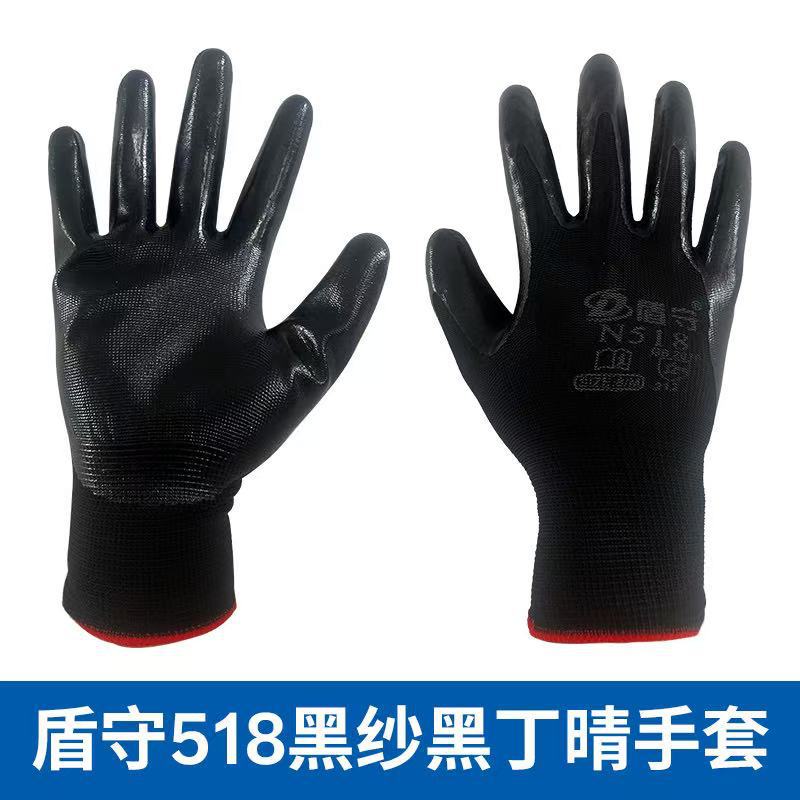 방패 Shou 노동 보호 니트릴 장갑 내마모성 미끄럼 방지 담근 나일론 장갑 13 핀 딩칭 블루 딩칭 검 딩 징