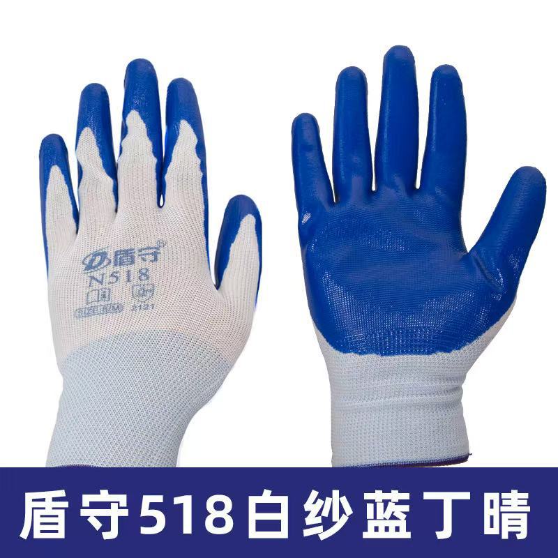 방패 Shou 노동 보호 니트릴 장갑 내마모성 미끄럼 방지 담근 나일론 장갑 13 핀 딩칭 블루 딩칭 검 딩 징스토어 가기