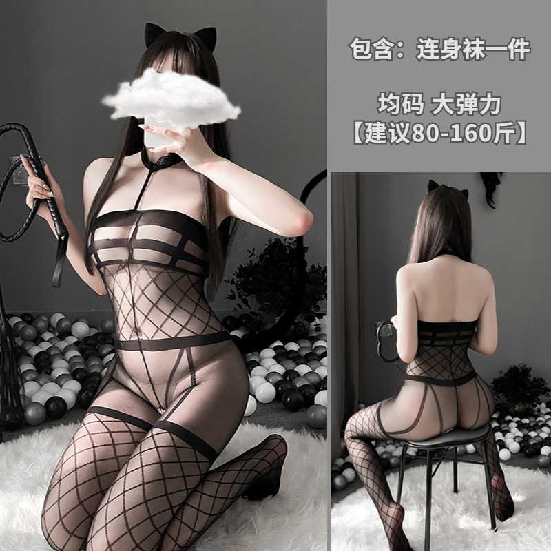 대외 무역 크로스 보더 플러스 사이즈 섹시 속옷 여성용 올인원 양말 그물 옷 실크 스타킹 가랑이 없는 세트 열정 유혹스토어 가기