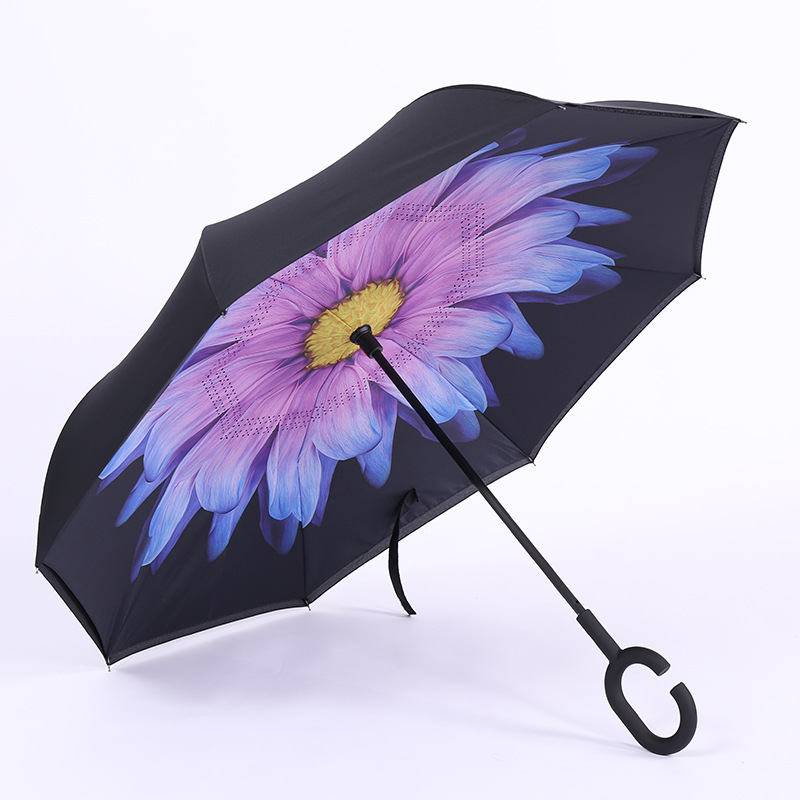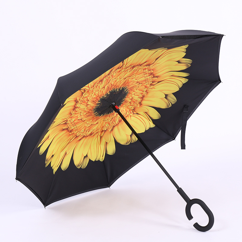 자동차 역 우산 남성과 여성의 더블 레이어 핸즈프리 역 우산 양지 바른 비 이중 목적 역 우산 긴 손잡이 우산 제조 업체 도매