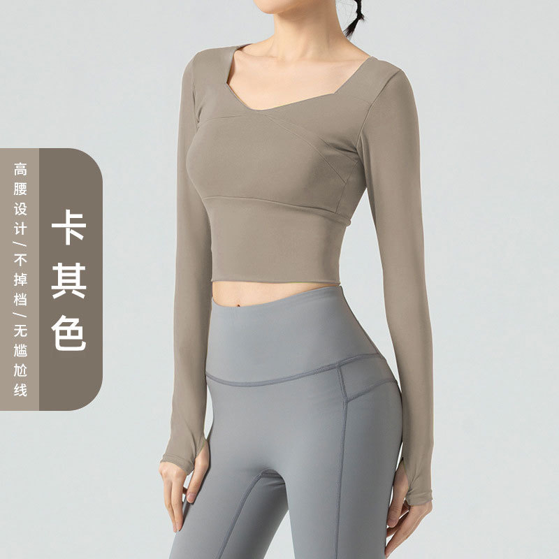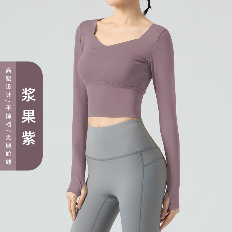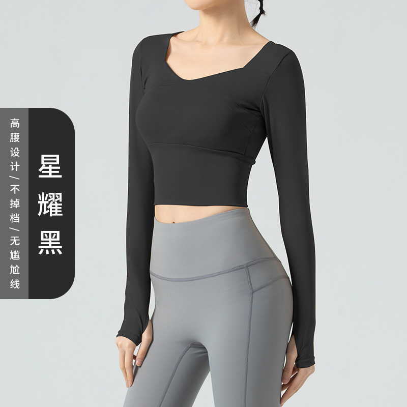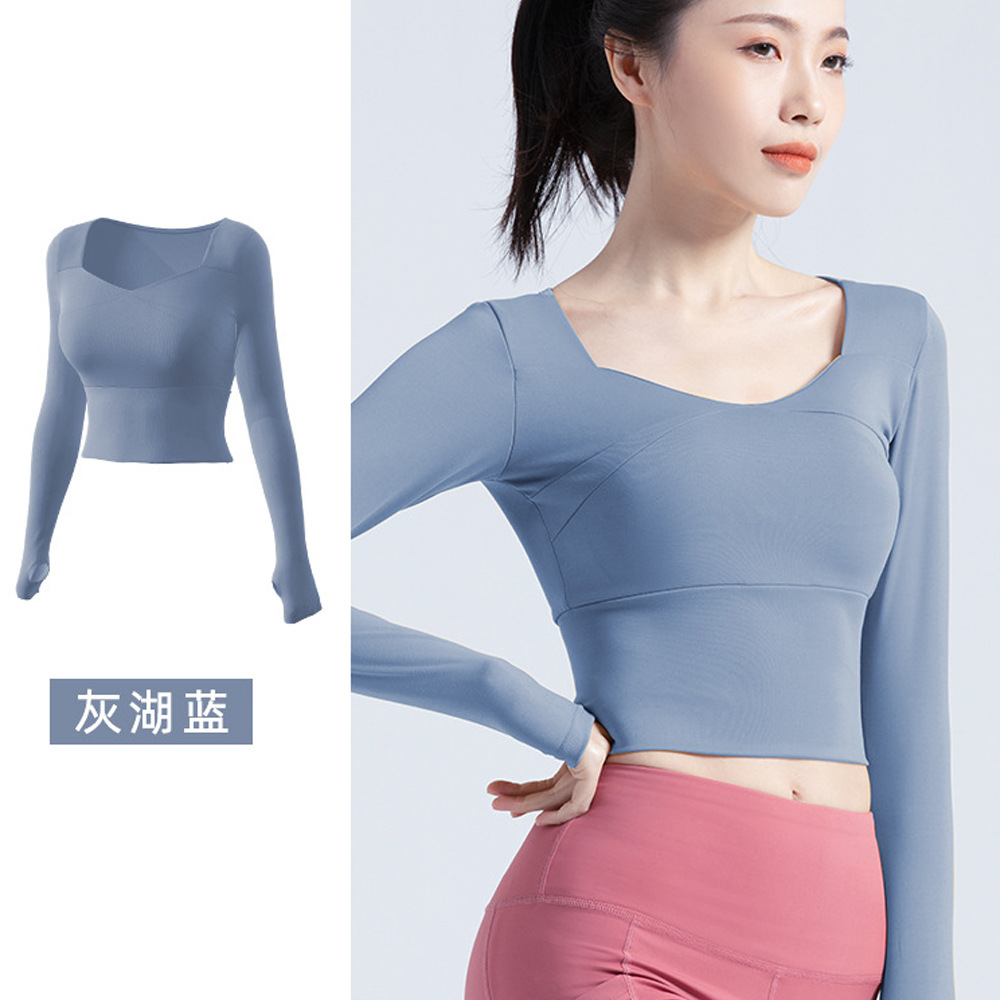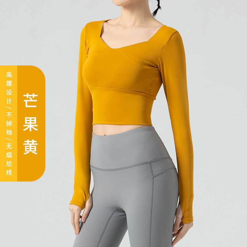 인터넷 연예인 스포츠 휘트니스 긴 소매 짧은 슬림 핏 러닝 탑 가슴 패드 뷰티 백 레몬 옐로우 요가 의류 여성용 재고스토어 가기