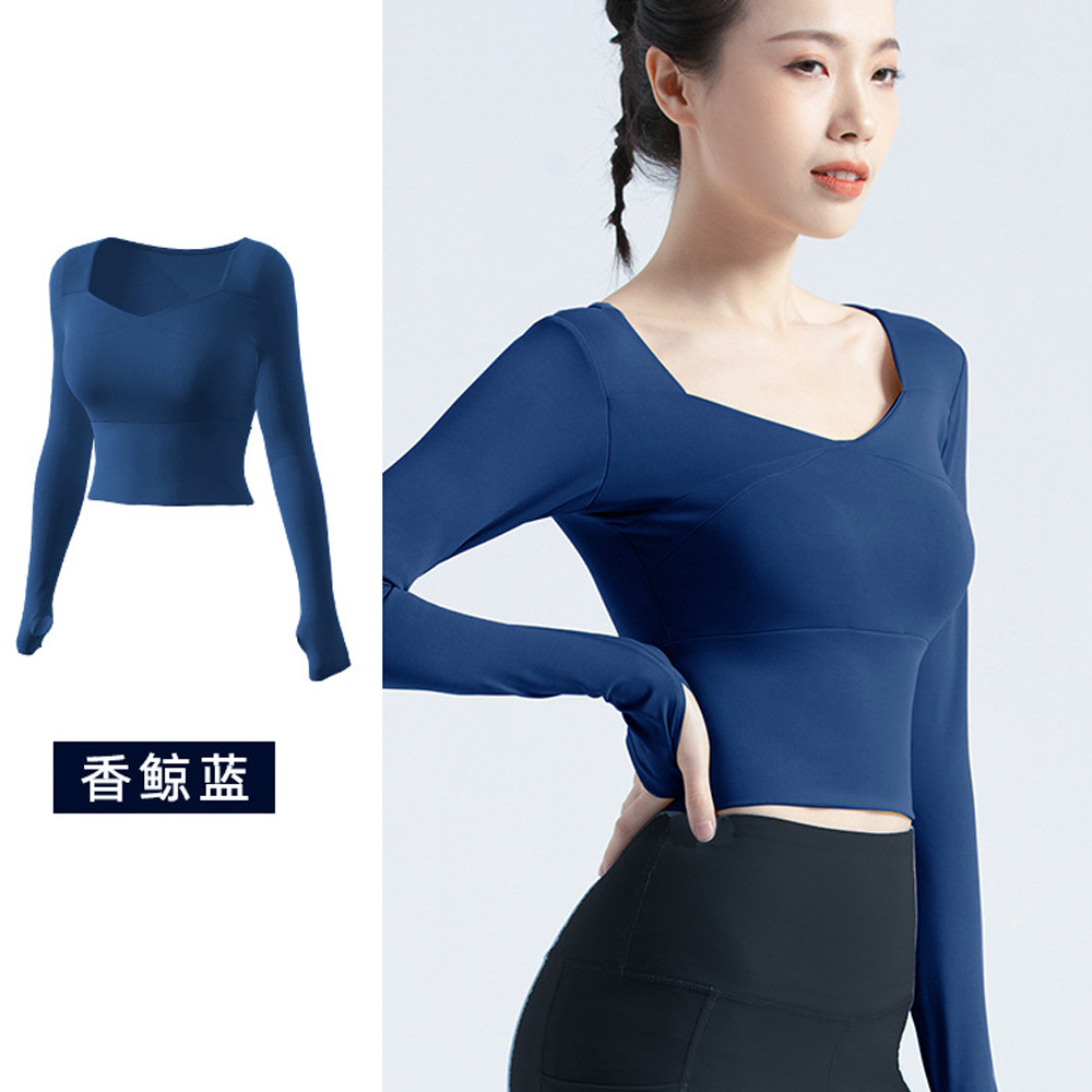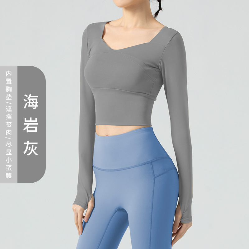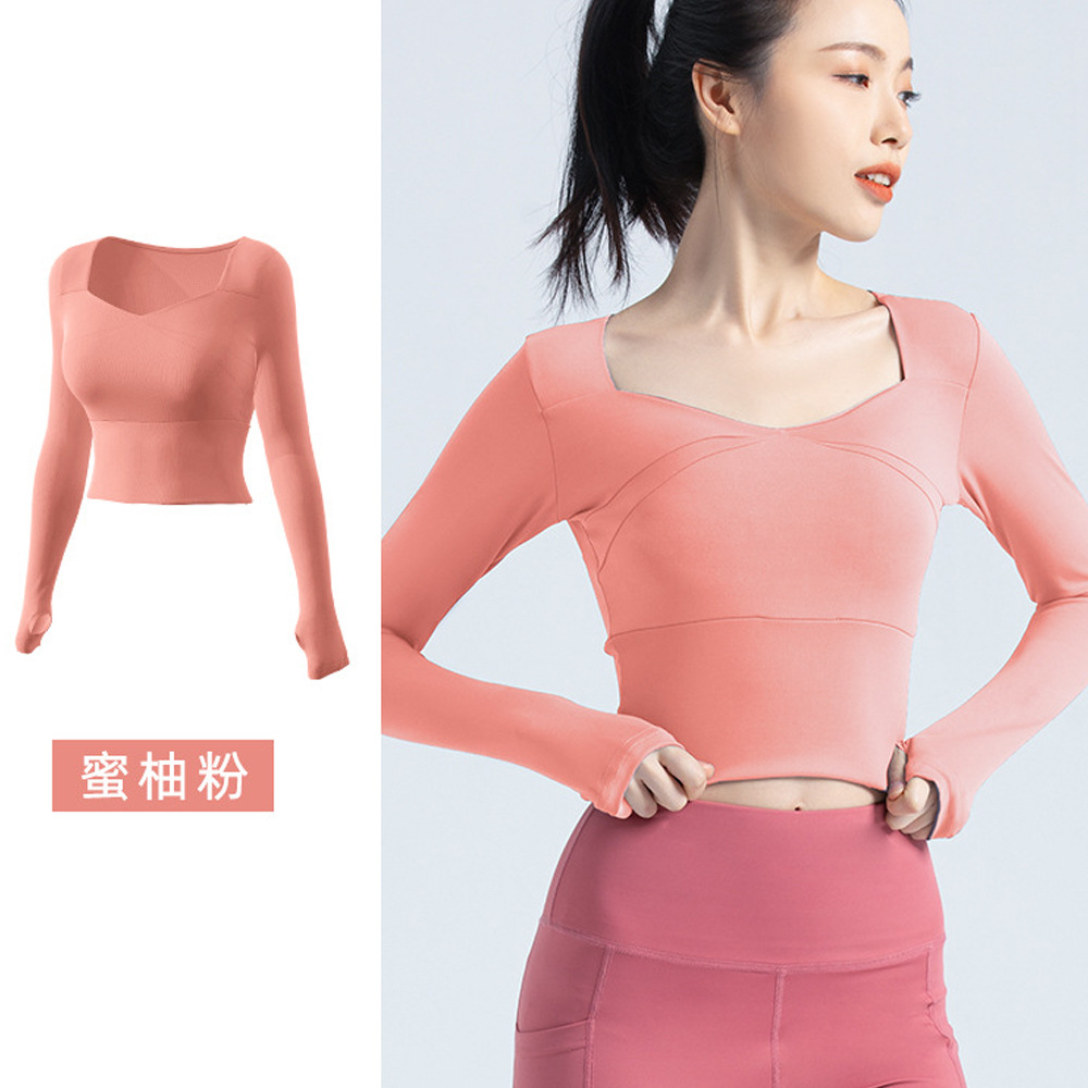 인터넷 연예인 스포츠 휘트니스 긴 소매 짧은 슬림 핏 러닝 탑 가슴 패드 뷰티 백 레몬 옐로우 요가 의류 여성용 재고