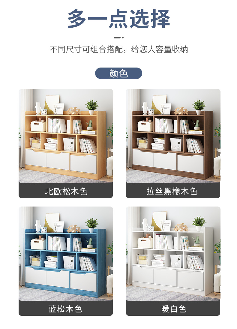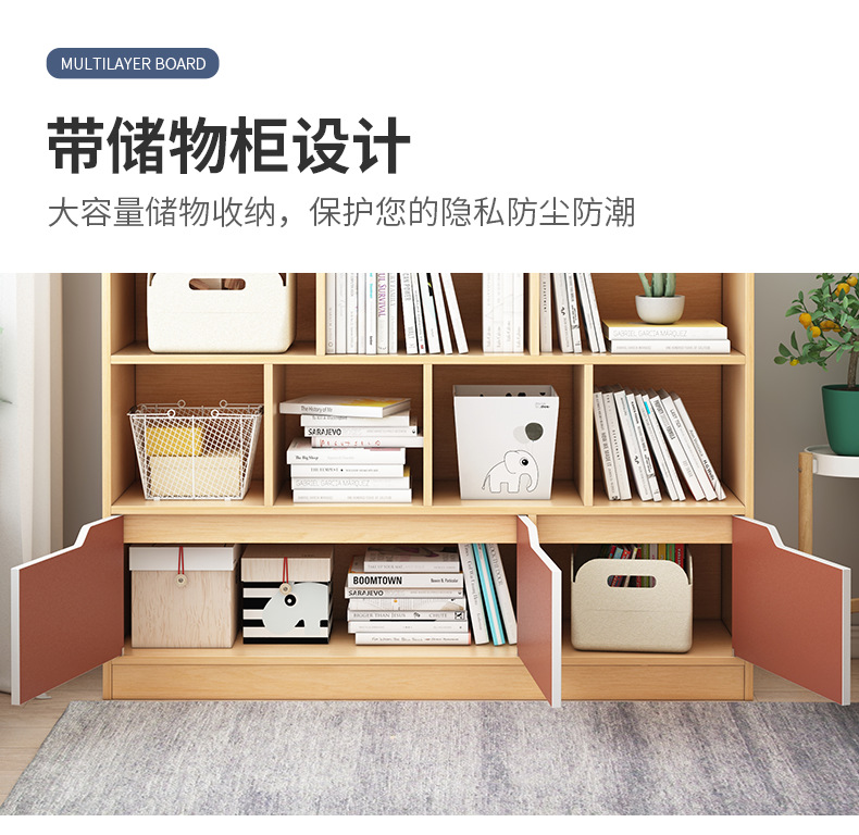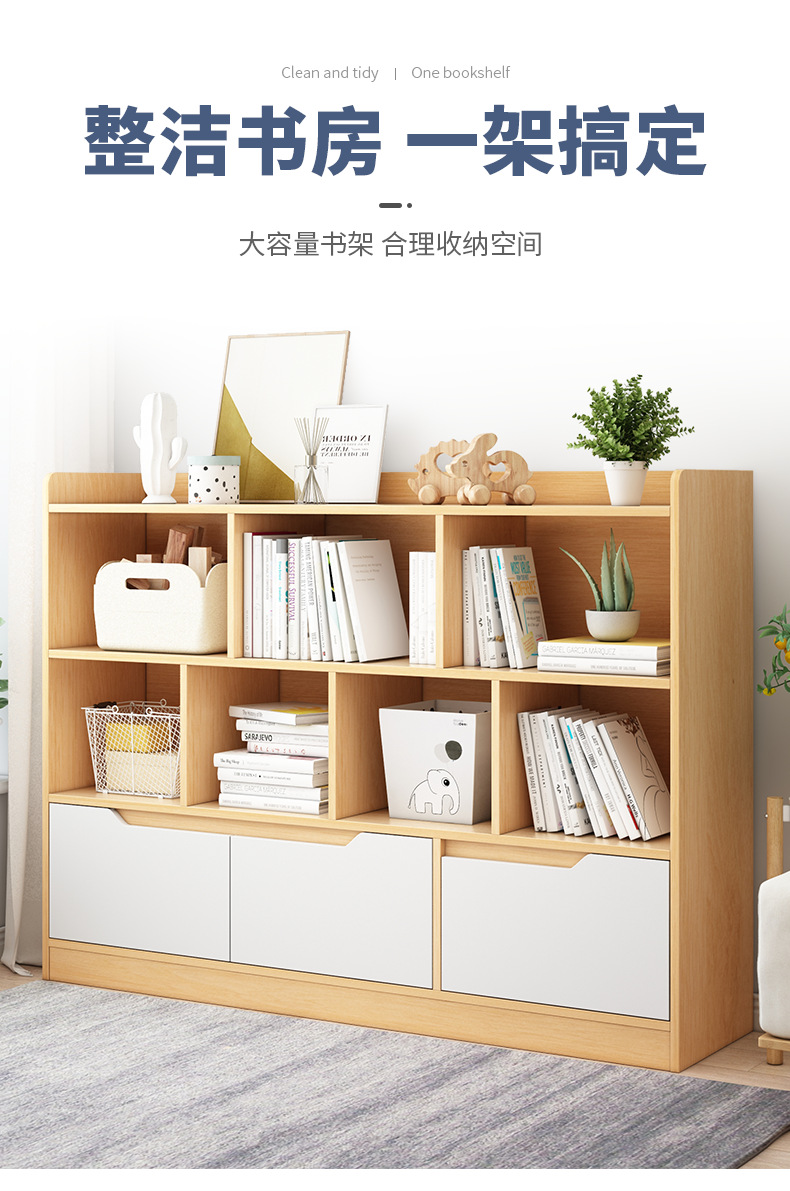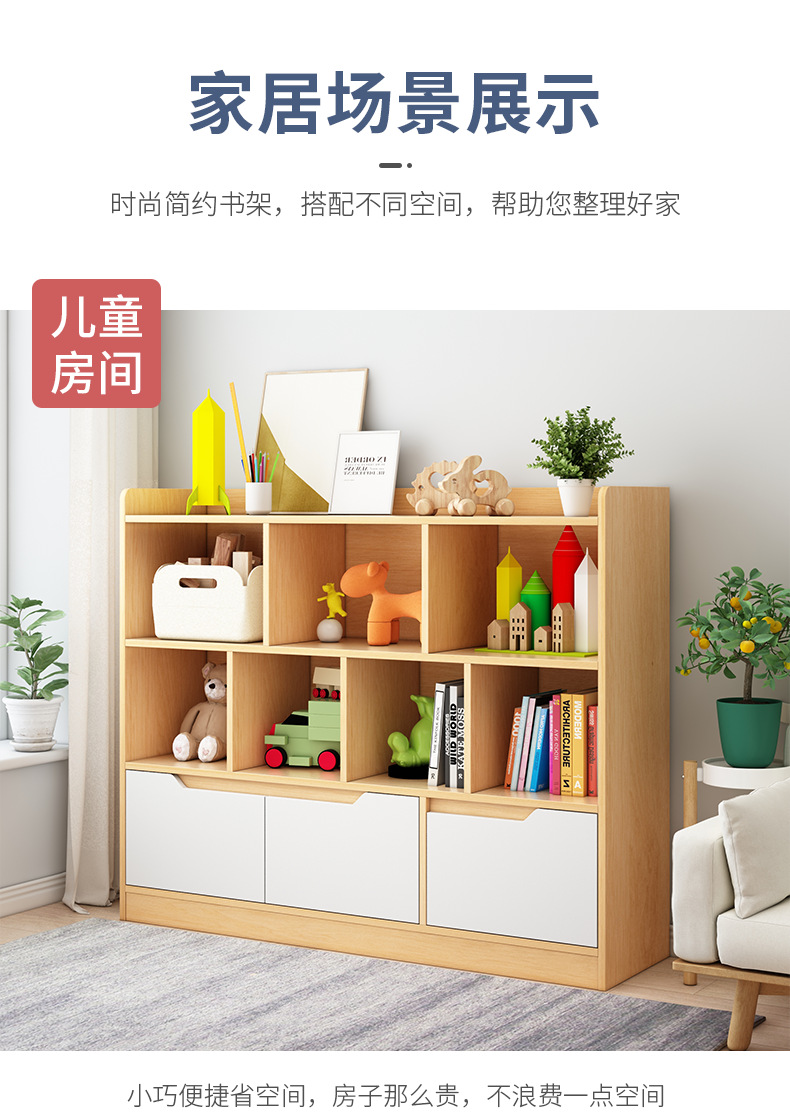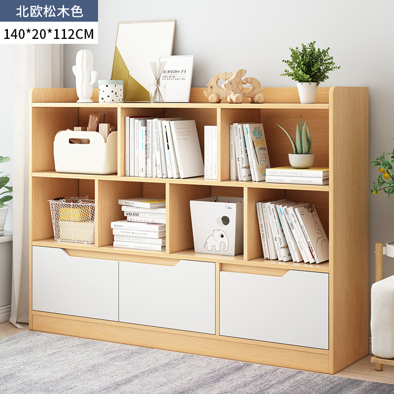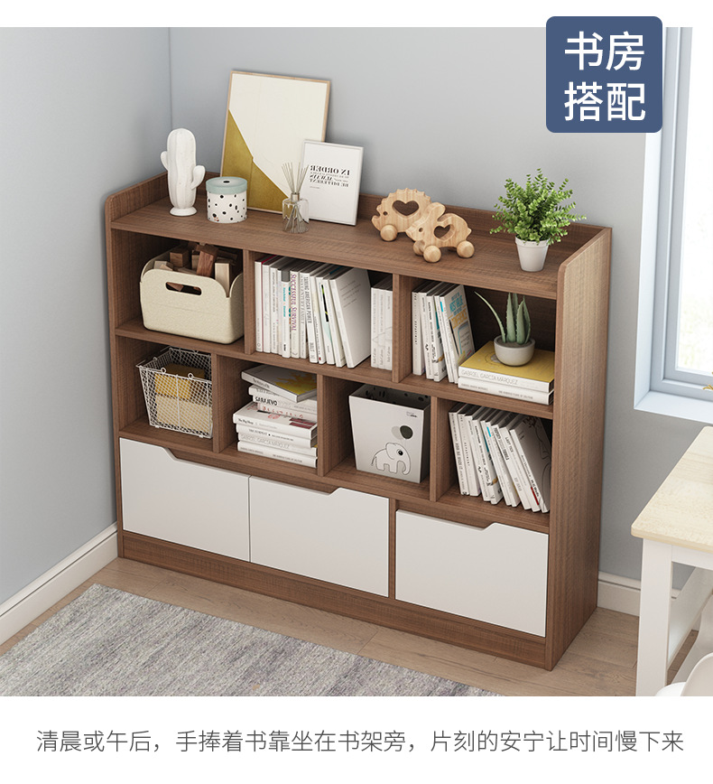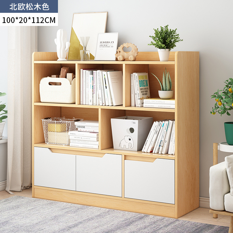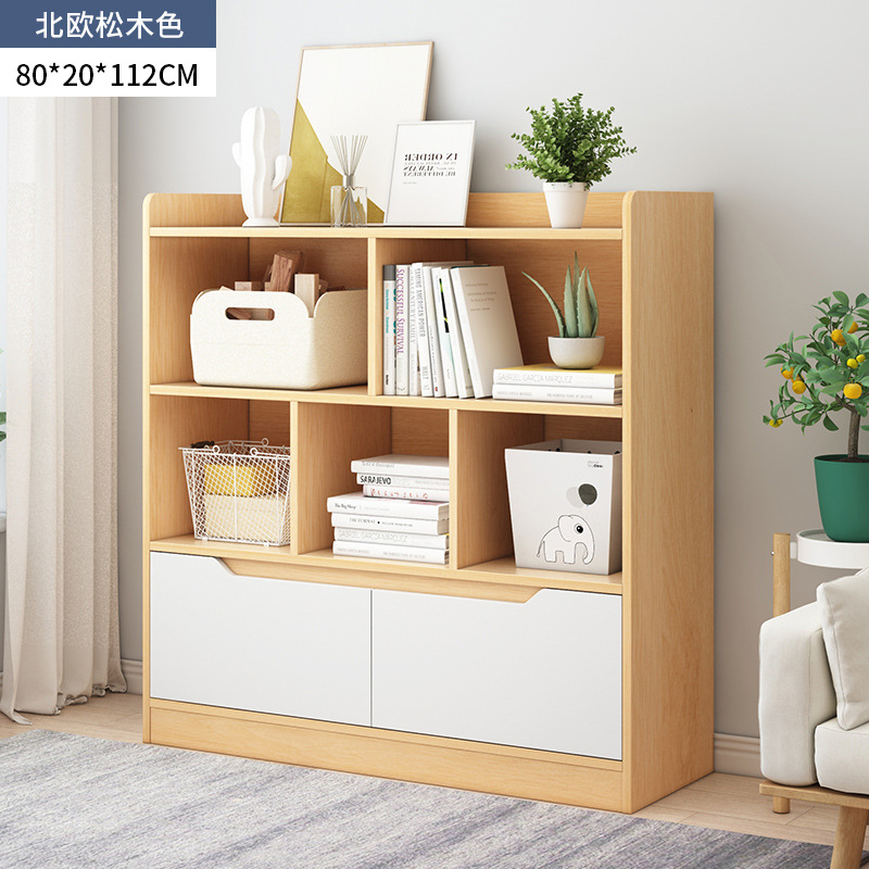 어린이를 위한 간단한 책장 바닥에서 천장까지 벽에 붙은 모조 단단한 나무 창의적인 수납 캐비닛 사무실 간단한 책 격자 선반