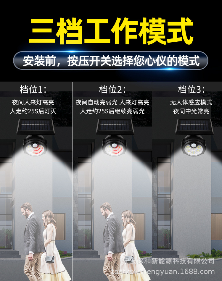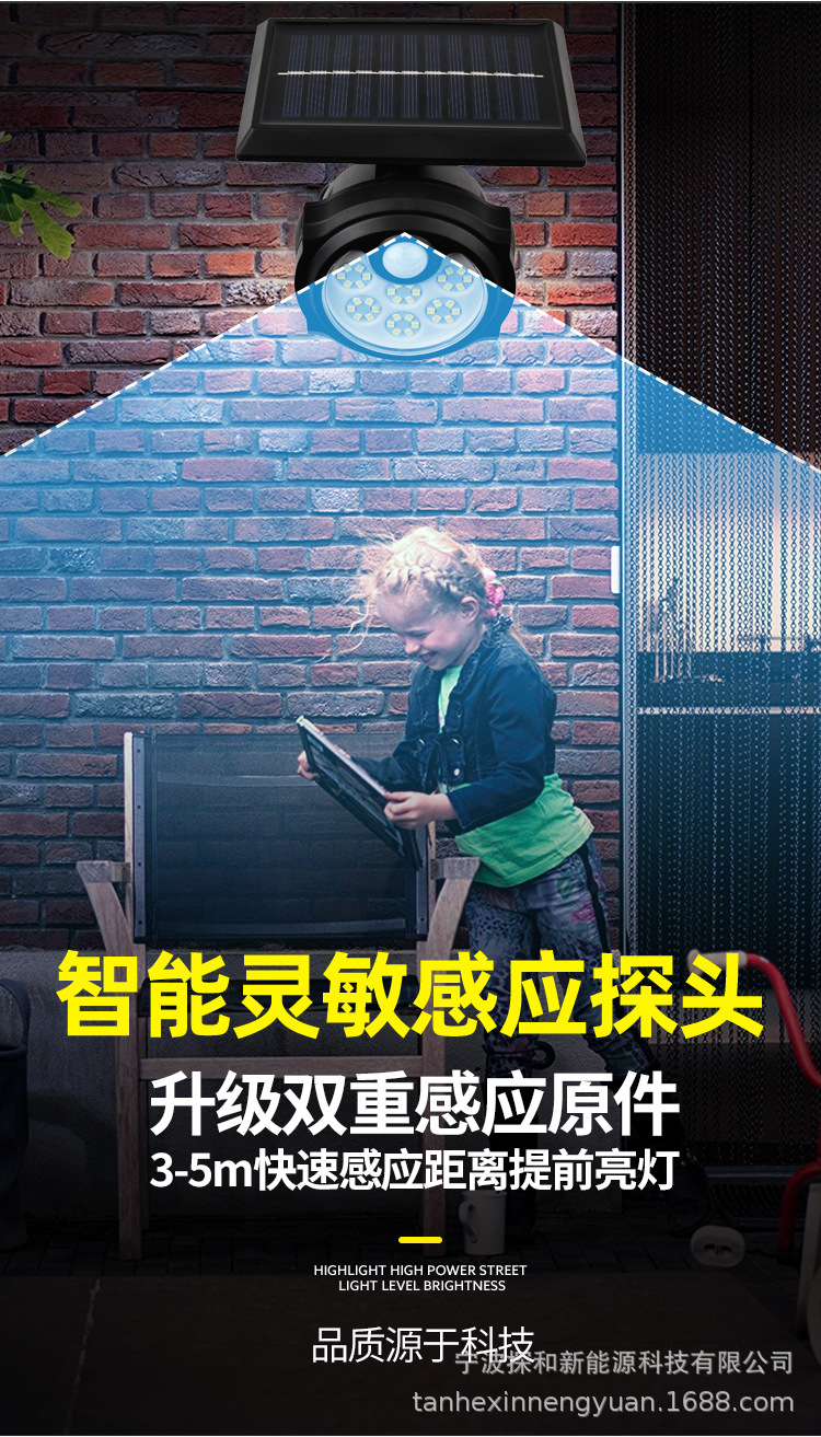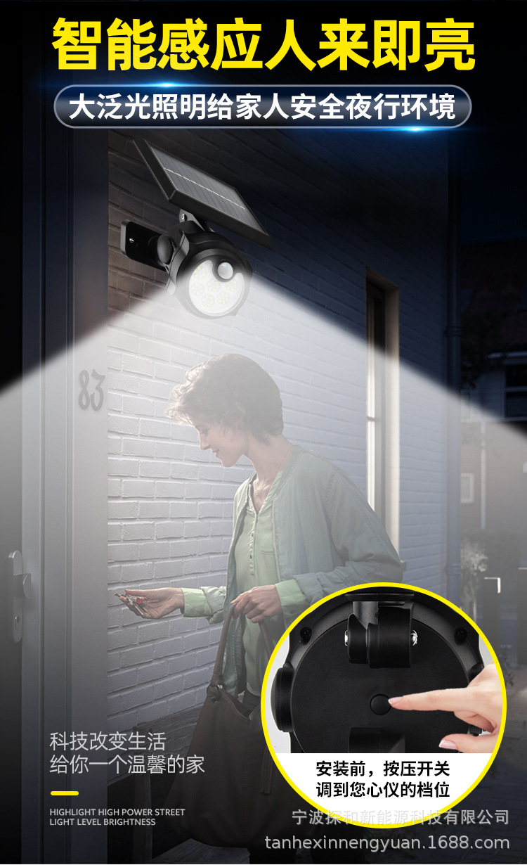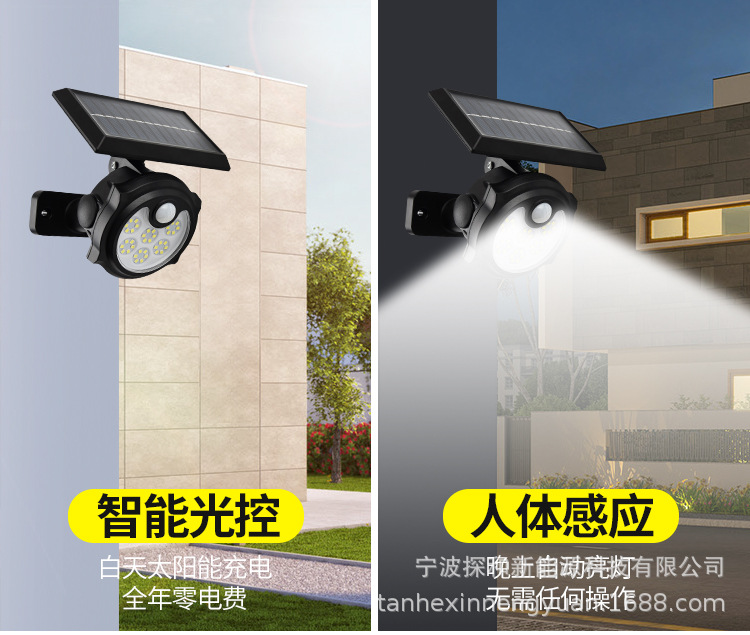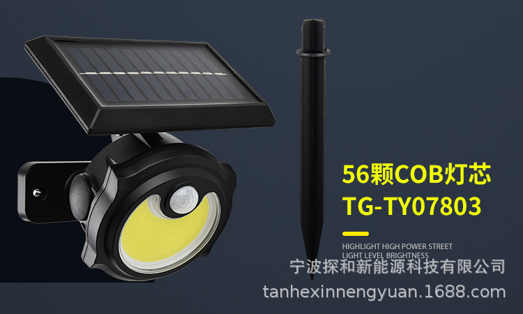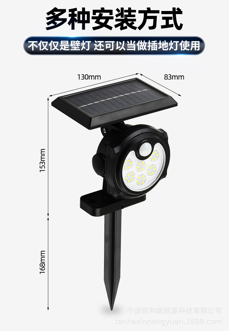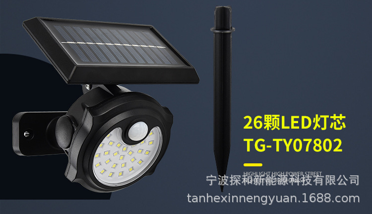 단일 헤드 태양광 램프 인체 감지 야외 방수 벽등 정원용 지상등 LED 가로등
