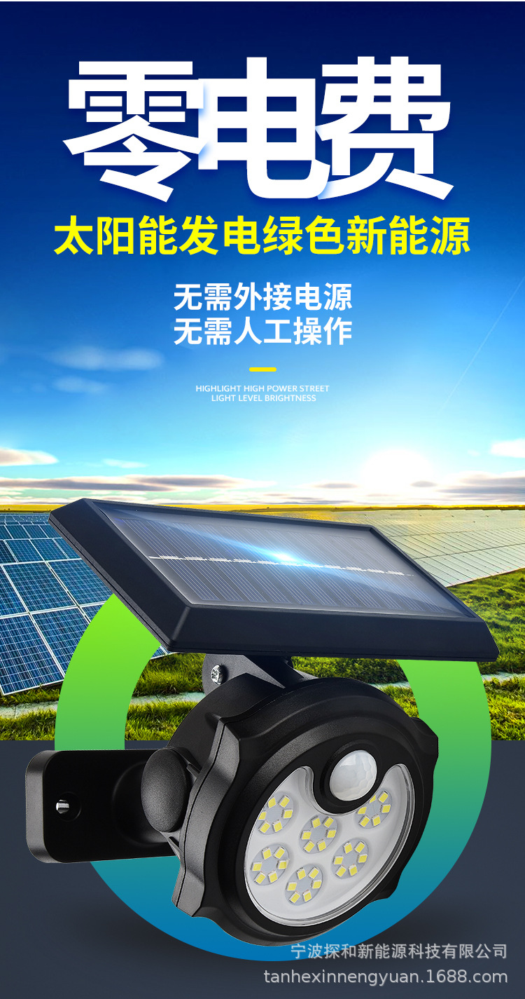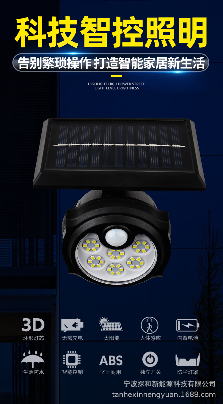 단일 헤드 태양광 램프 인체 감지 야외 방수 벽등 정원용 지상등 LED 가로등스토어 가기