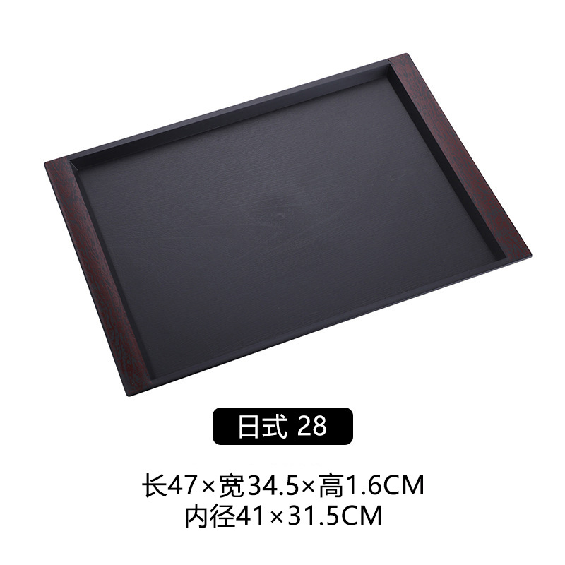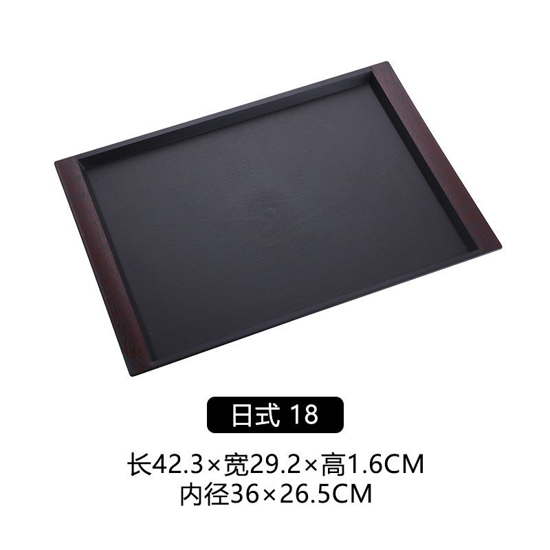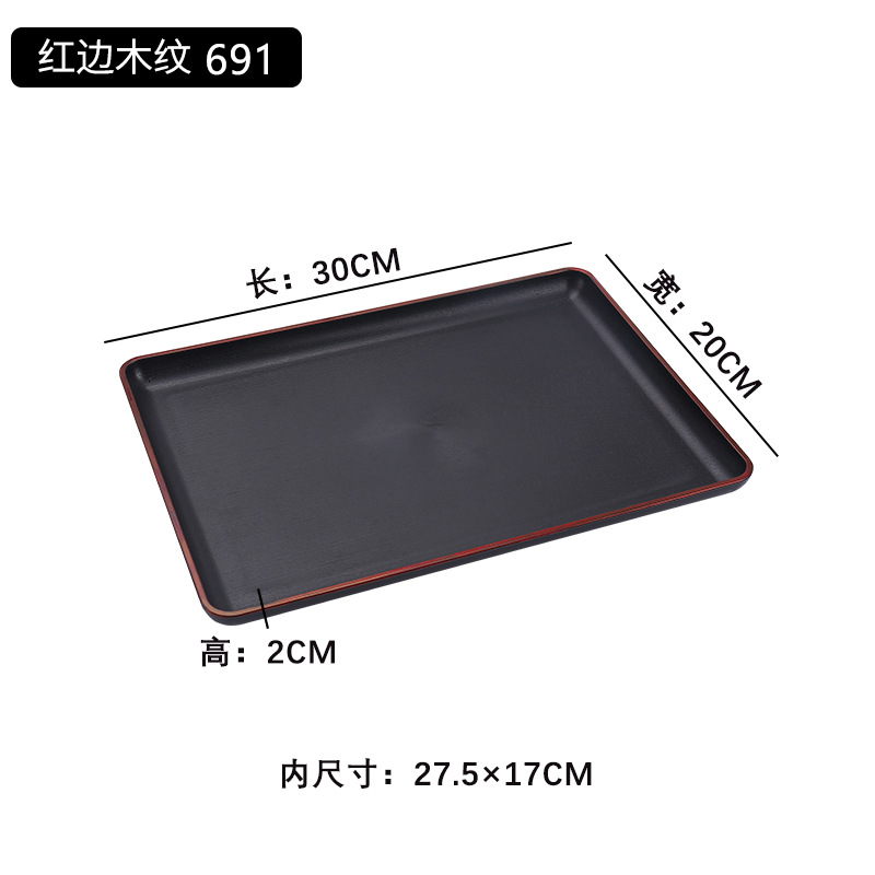일본식 모조 우드 그레인 멜라민 트레이 플랫 앵글 레드 에지 요리 스시 접시 레스토랑 누들 레스토랑 간식 휴대용 트레이