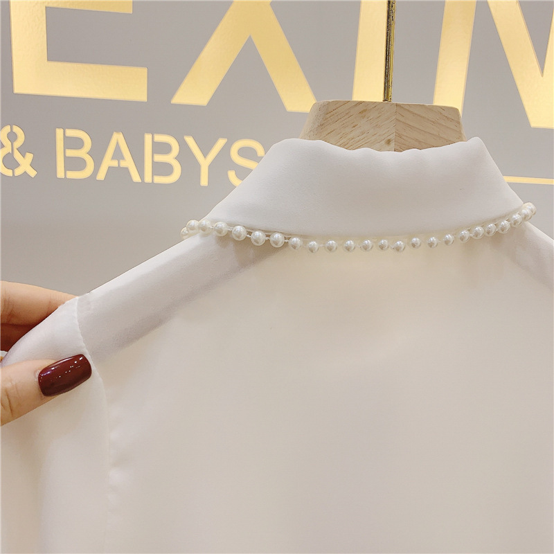 여아 셔츠 2021 봄과 가을 스타일 샤넬 스타일 쉬폰 셔츠 어린이 페르시 보우 긴 소매