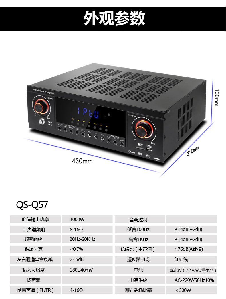 Qisheng K-17 홈 시어터 KTV 오디오 세트 홈 노래방 회의실 무대 댄스룸 카드 홀더 스피커 없음