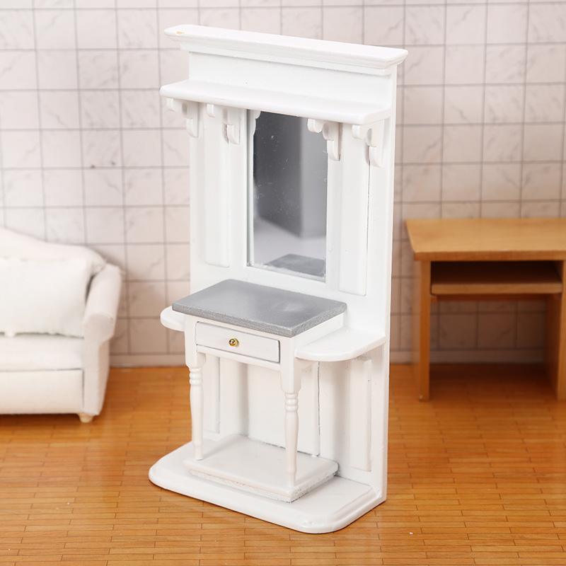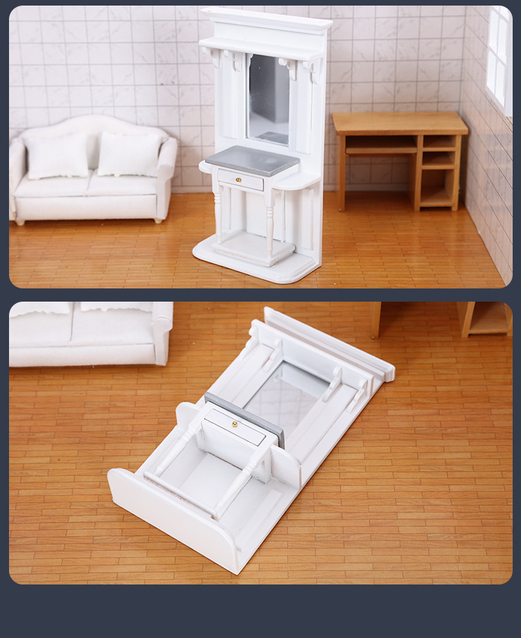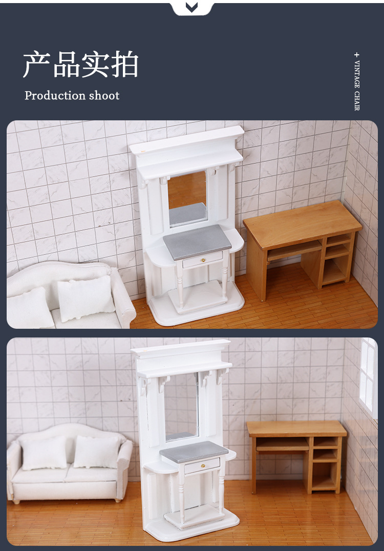 1:12 인형 집 인형 집 미니 가구 모델 장식품 흰색 거울 간단한 화장대 액세서리스토어 가기