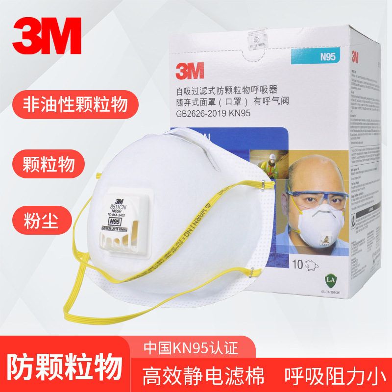 3M 8511CN 미립자 물질 보호 KN95 마스크 헤이즈 방지 먼지 산업용 연삭 통기성 호흡 밸브스토어 가기