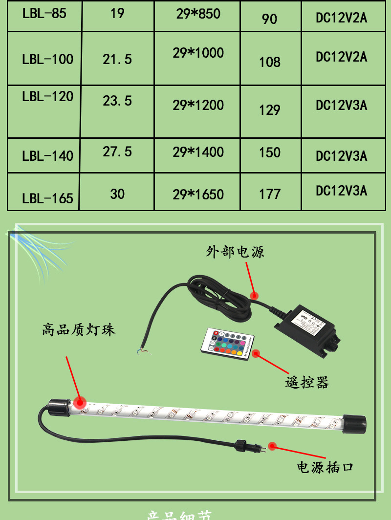 • LBL-402 울타리 조명 60 RGB 램프 비즈 작동 온도: -20 ° C-40 ° C 전력: 12W